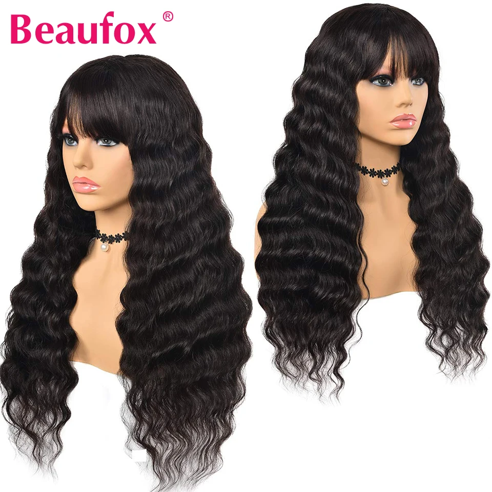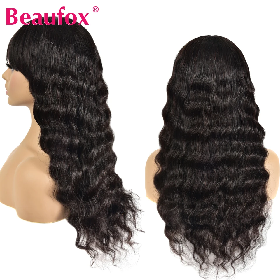 Beaufox Свободный парик с глубокой волной малазийские человеческие волосы парики для женщин безклеевой полный парик с челкой Remy человеческие волосы парик 8-28 дюймов