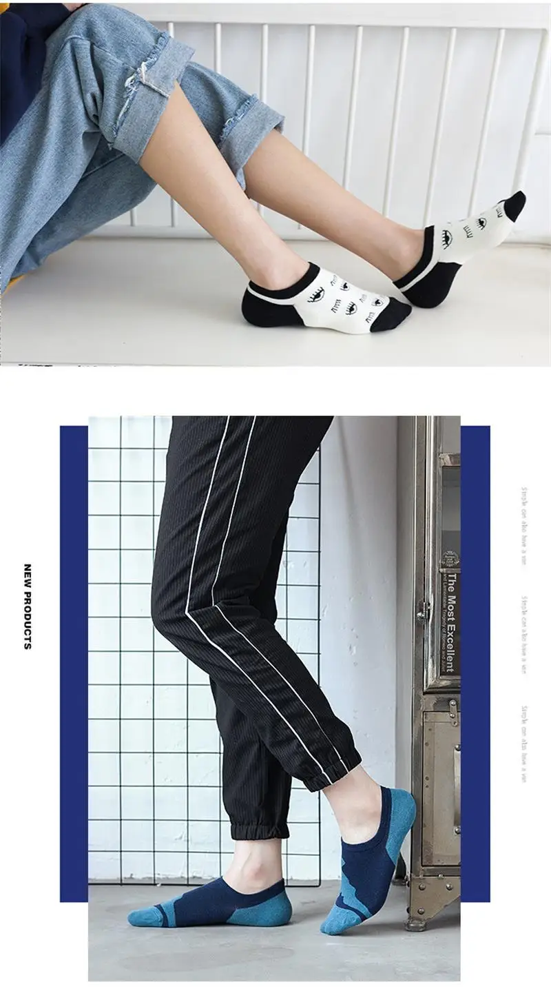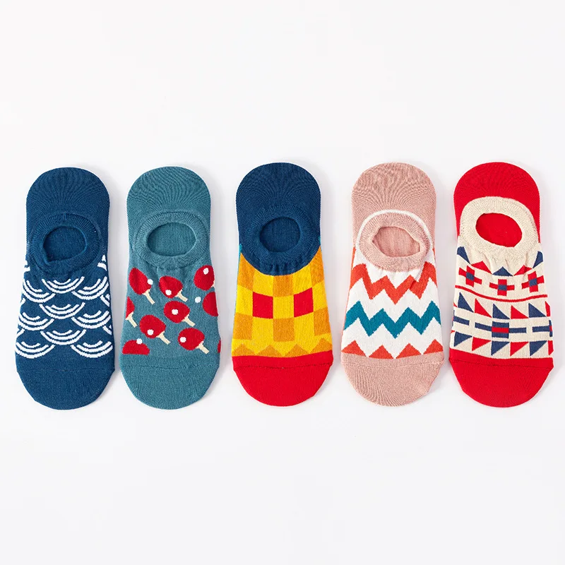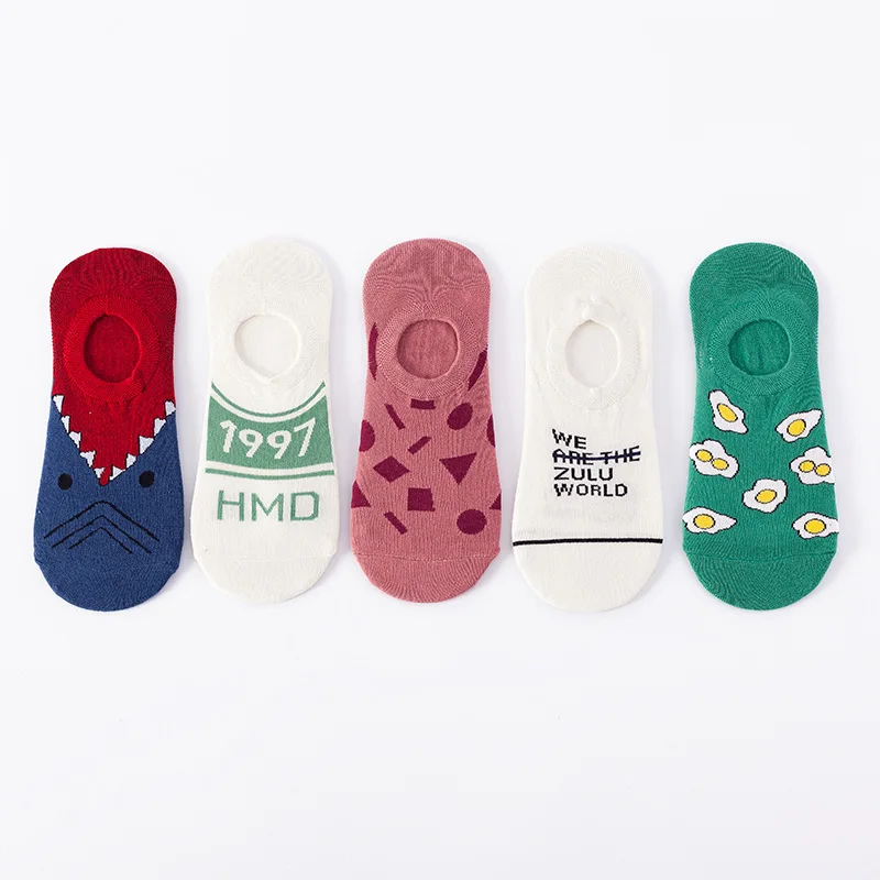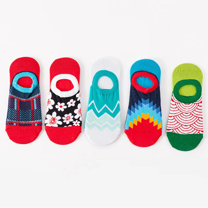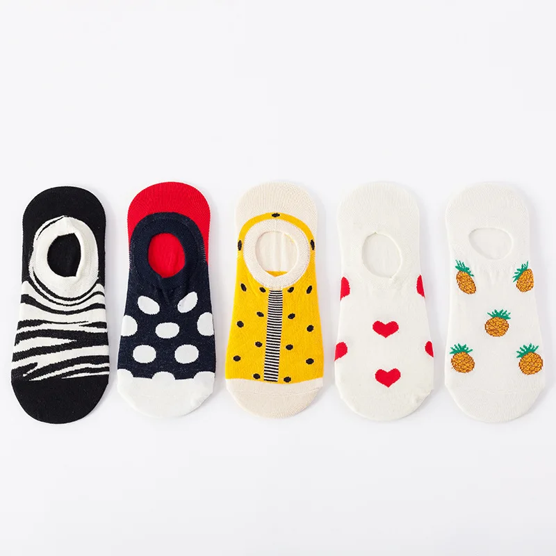 5 паралот модные Хлопковые женские носки-башмачки Нескользящие, дыш...