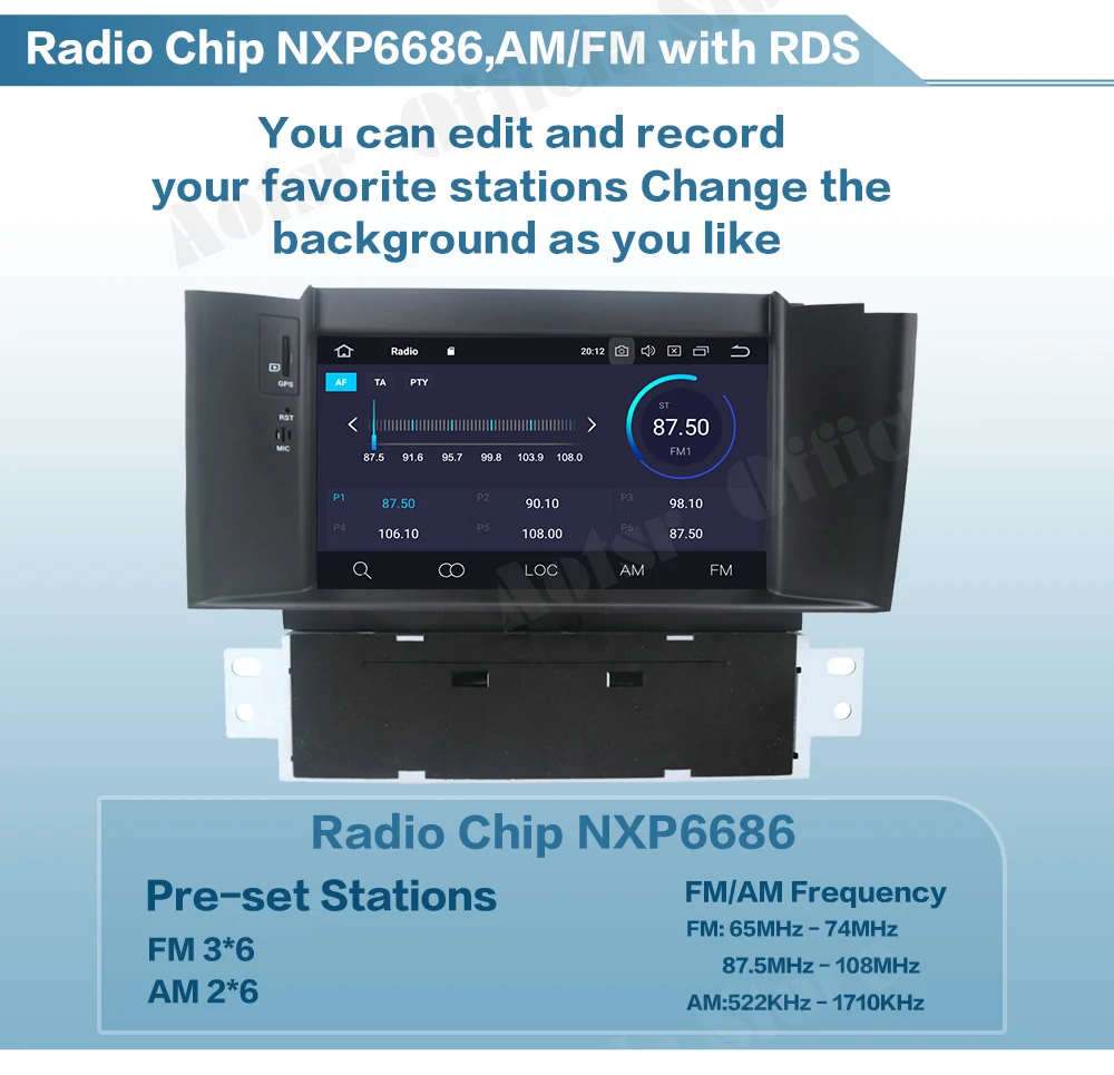 Предустановочные станцииFM 3*6AM 2*6Частота FM/AMFM:65 МГц-74 МГц87,5 МГц-108 МГцAM: 522 кГц-1710 кГц