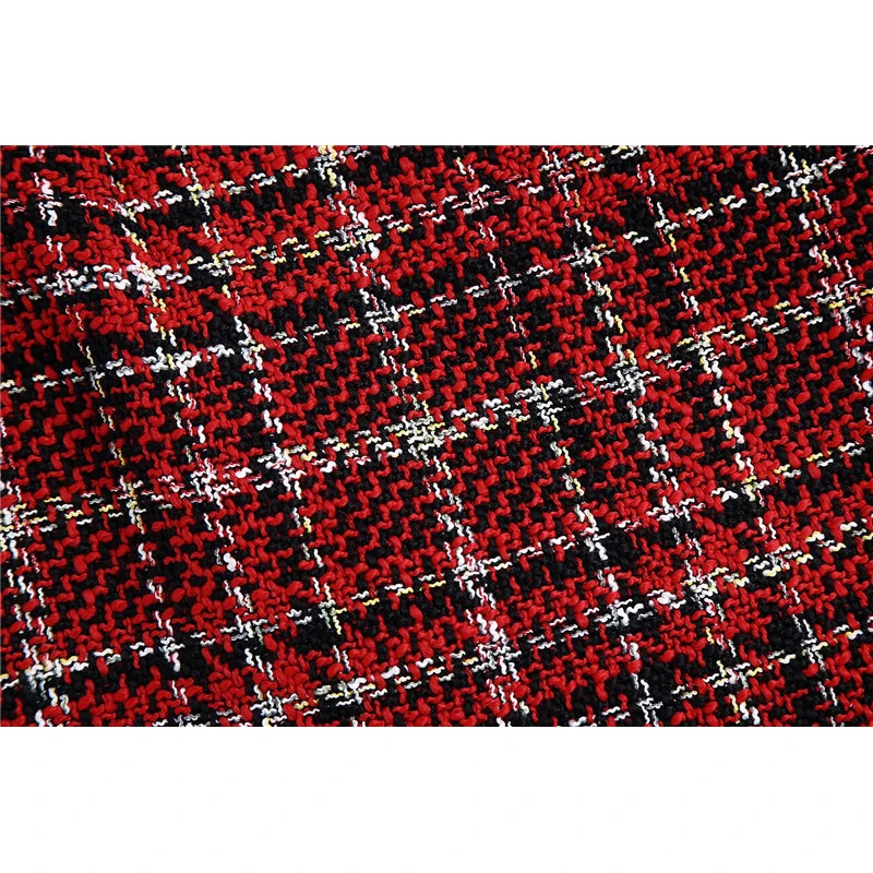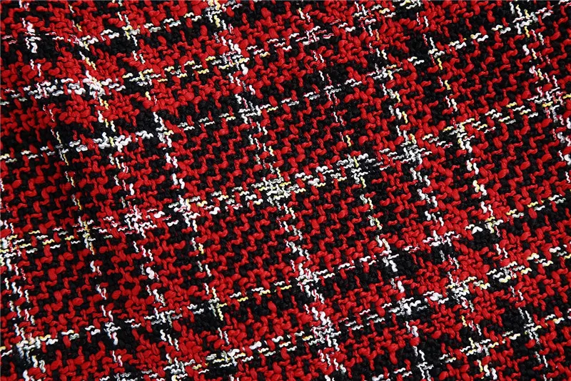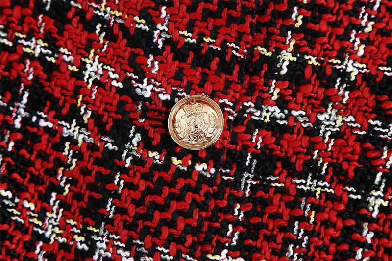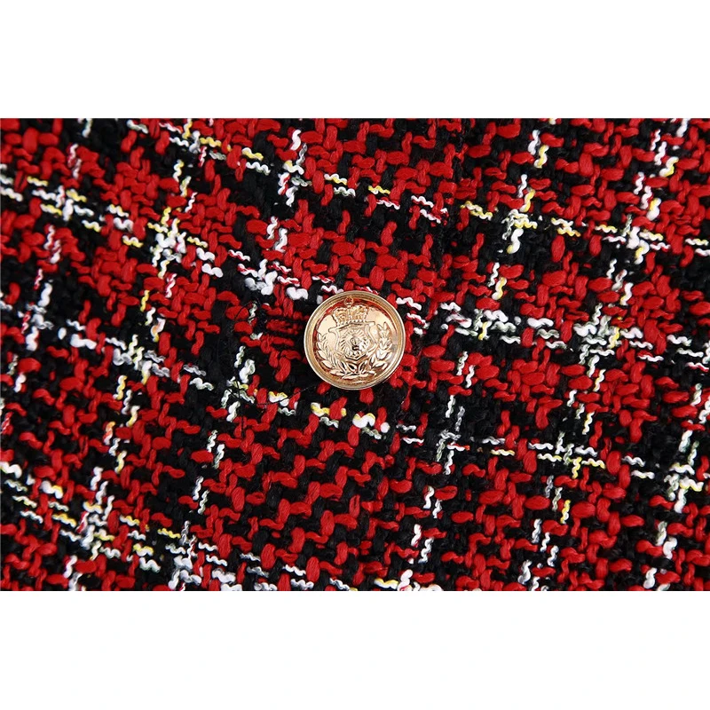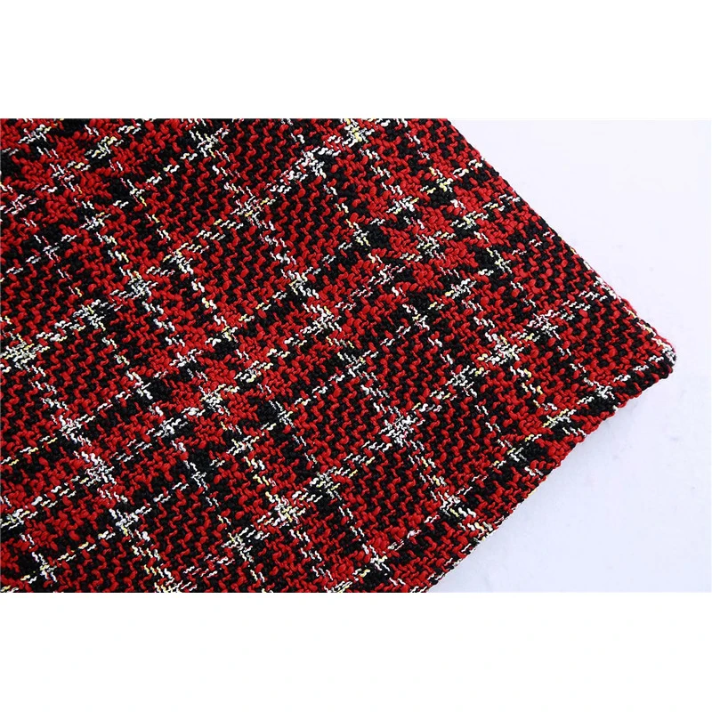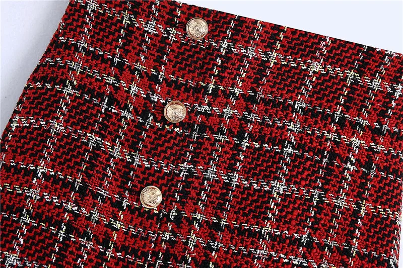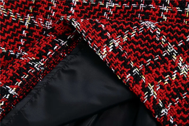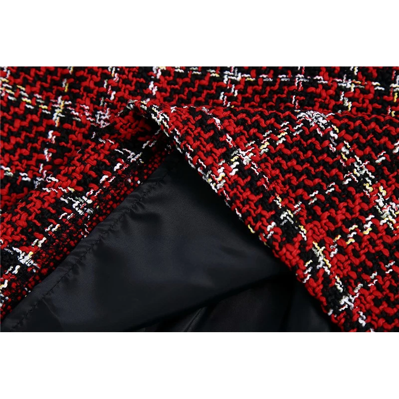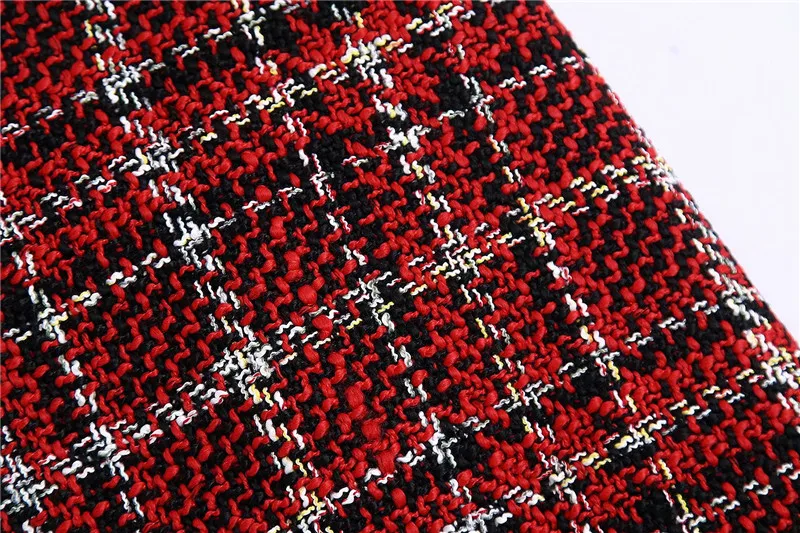 Юбка мини из твида Evfer, однобортная, с высокой талией, красная, в клетку, плотная, костюм с короткой юбкой