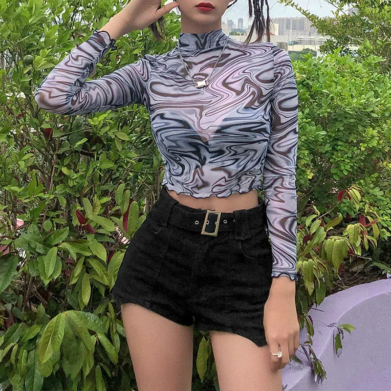 Женская Сетчатая футболка Cyber Y2k, Прозрачная Футболка с высоким ...