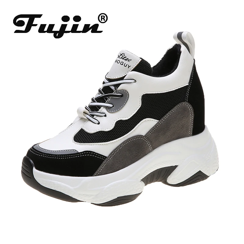 Fujin 2021, зимние женские кроссовки, модные, плюшевые, сохраняющие тепло, на платформе, дышащие, с круглым носком, на толстой подошве, для отдыха, на шнуровке, женская обувь