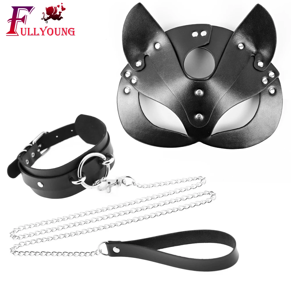 Портупея Fullyoung из искусственной кожи для женщин, маска и черная цепочка на шею, готический пояс с цепочкой, сексуальные аксессуары для взрослых