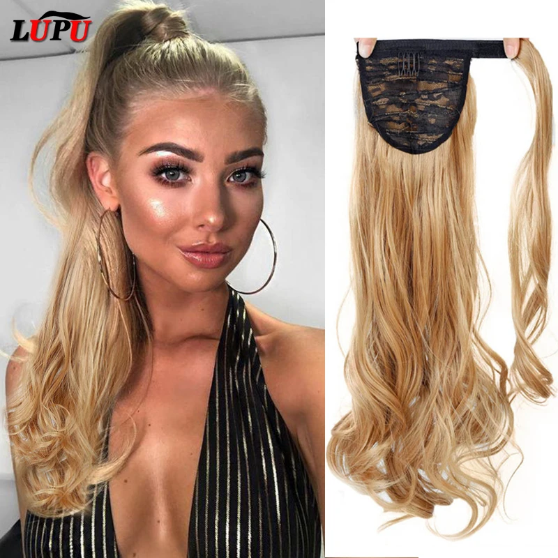 Синтетический конский хвост LUPU, длинная волнистая накладка вокруг зажима, наращивание волос, конский хвост, натуральные накладные волосы, Термостойкое волокно