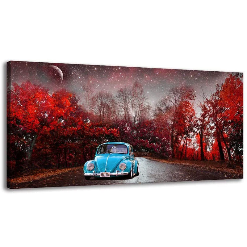 Алмазная вышивка 5D "красный лес и синий автомобиль", большая мозаика ручной работы, стразы, стены StickersZP-2987