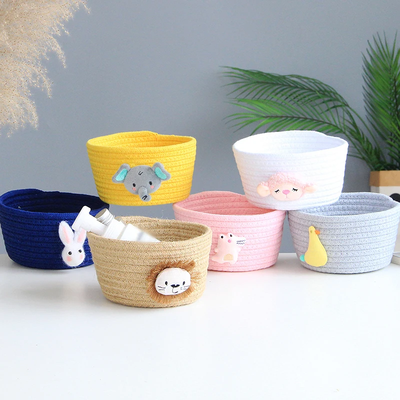 Веревка из хлопка корзины для хранения с животными Форма Детские Корзина для белья и грязной одежды ручной ткацкий станок Настольный разное Коробка-Органайзер