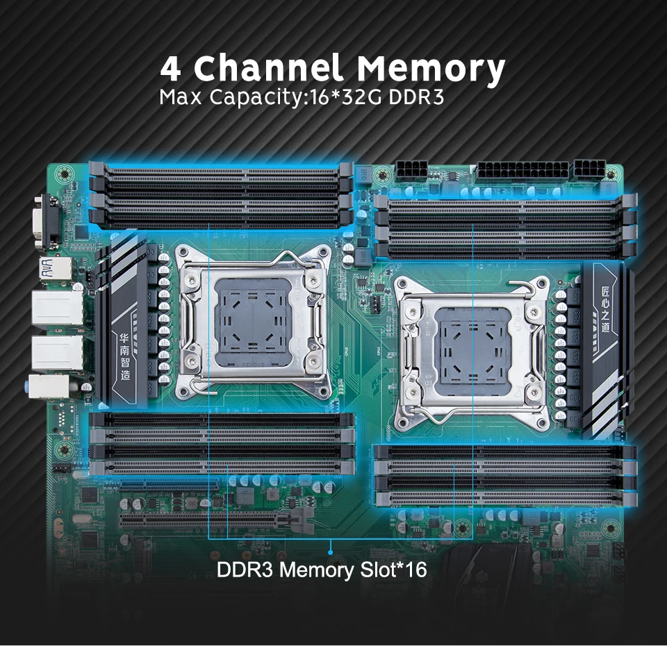 Модель: HUANANZHI X79 Dual-16D материнская платаЦП гнездо: поддерживает Intel LGA2011 контактный процессор и двойной ЦП разъемГнездо памяти: 16 * DDR3 ПАМЯТЬ, максимальная емкость памяти 16*32GСтандарт памяти: Поддержка двухканальной DDR3 1866/1600/1333 МГцИнтерфейс SATA Inderface:4 * Интерфейс SATA2.0, 2 * Интерфейс SATA3.0Расширенная внутренняя сторона: IO:1 * PS/2 мышь/интерфейс клавиатуры, 4 * USB2.0,2 * USB3.0,2 * гигабитная Ethernet карта, 3*3,5 мм аудио интерфейс; Расширительный контакт: 2*9pin USB2.0,1*19pin USB3.0,1 * передний аудиовыход pinСлоты расширения: 3 * PCI Express3.0X16,2 * PCI ExpressX8,1 * PCI ExpressX4Soud трек: 5,1Сетевой интерфейс: Gigabit EthernetИнтерфейс питания: 24pin + 8pin + 8pinИнтерфейс вентилятора: 8Слой PCB: 12 слоев PCB,7 + 7 фаз питанияРазмер: 305*330 мм E-ATX