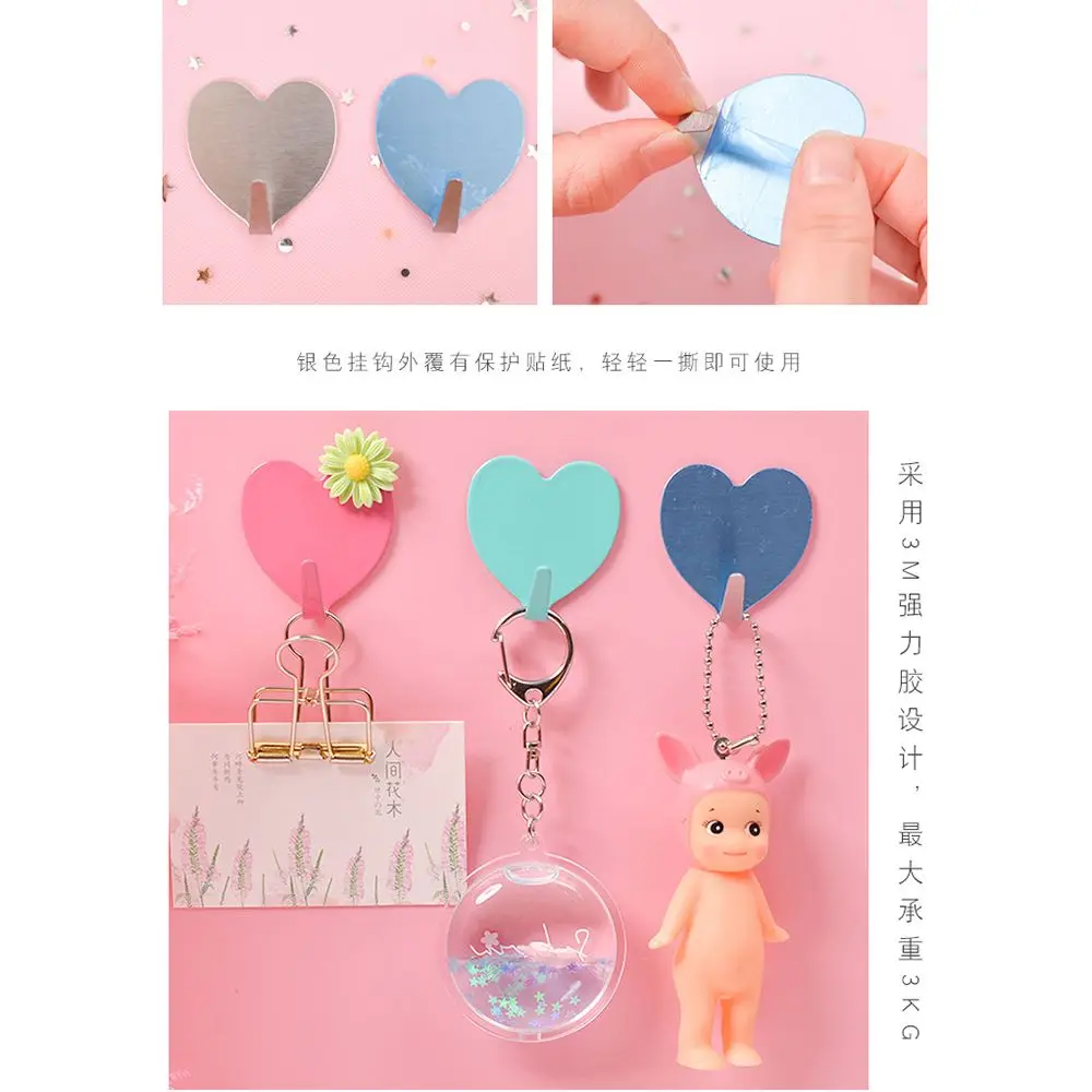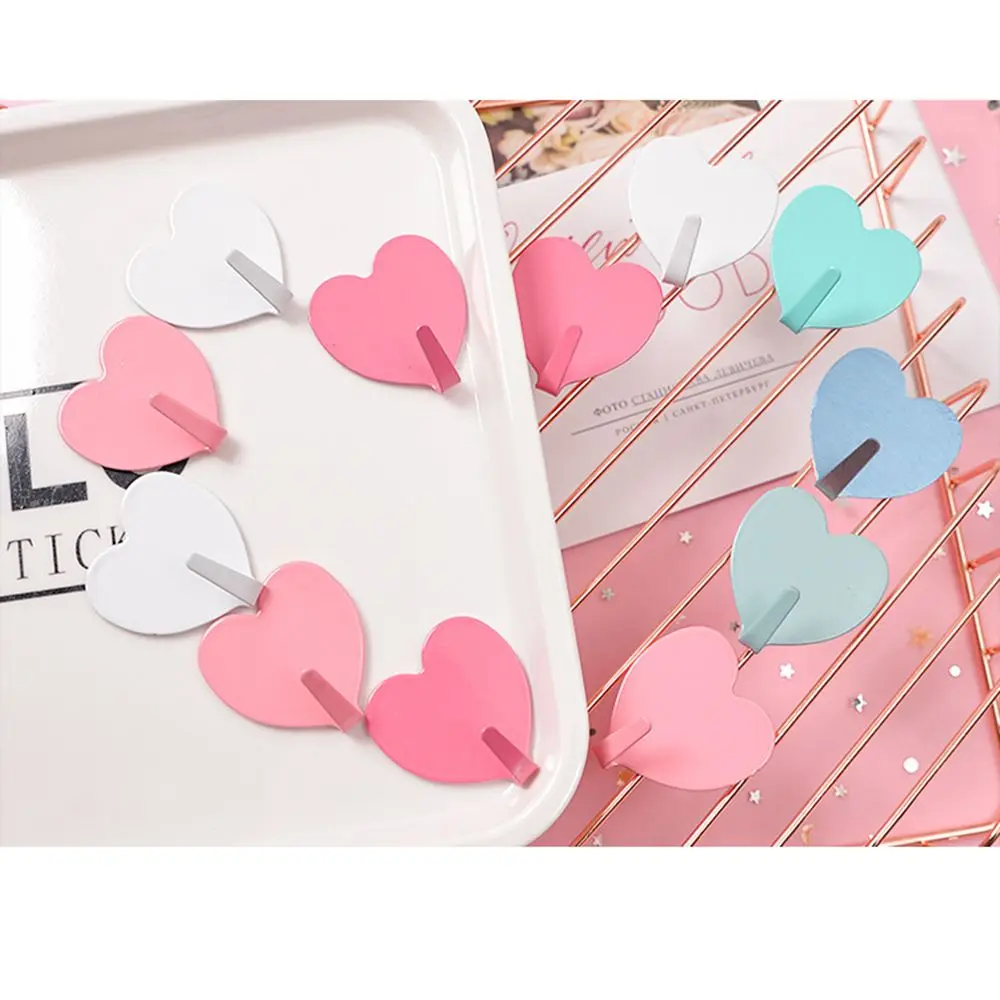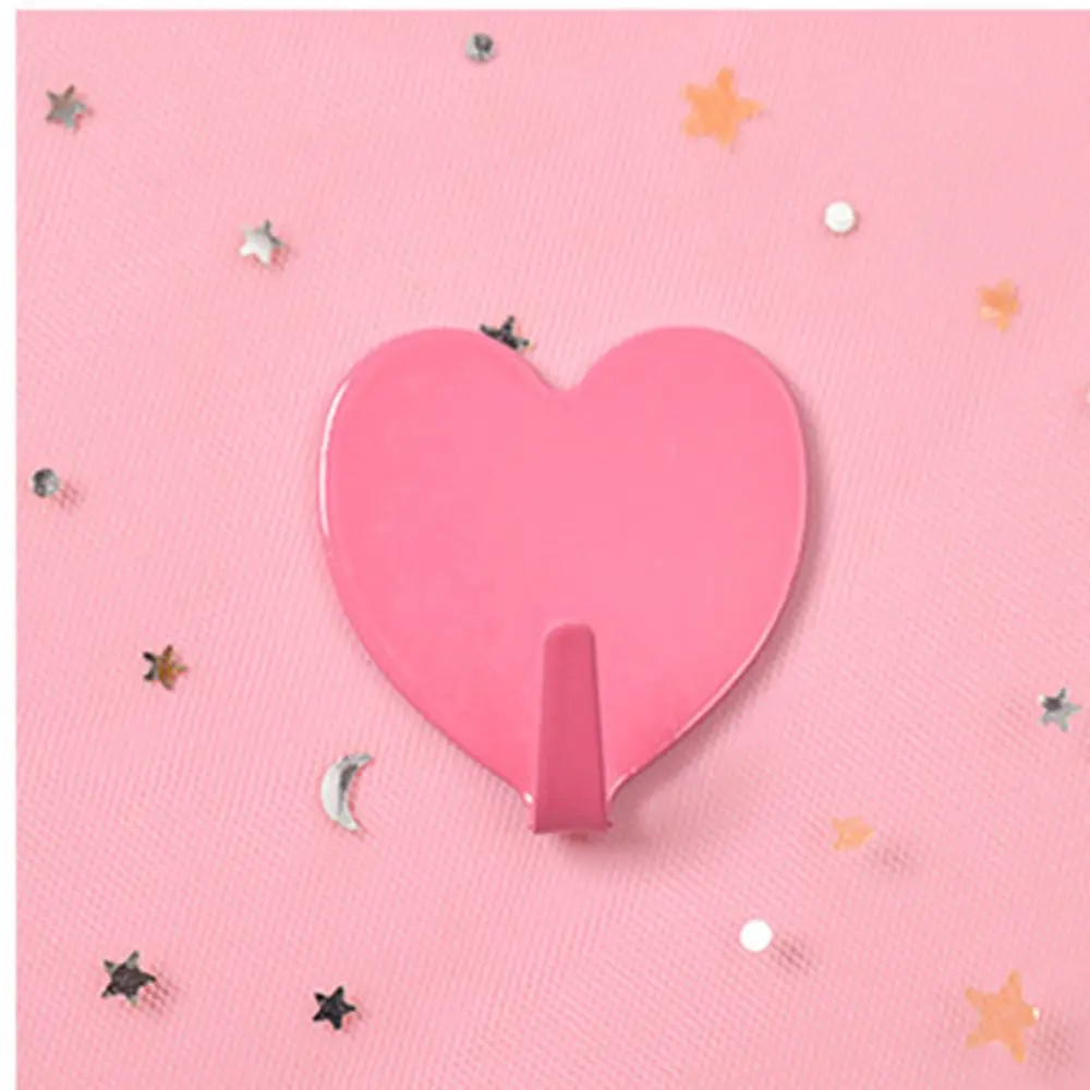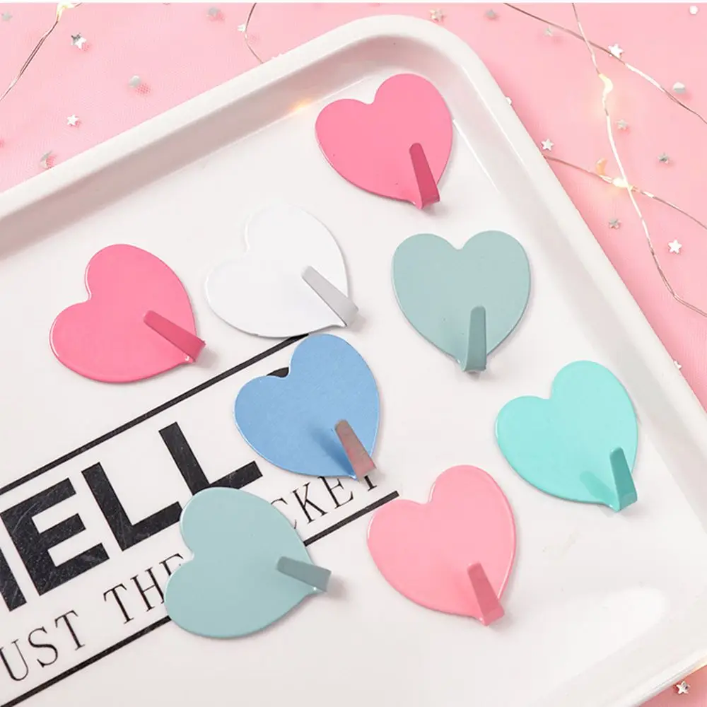 Креативный металлический симпатичный крючок в форме сердца, крепкая клейкая паста, настенный крючок, кухонный крючок, Не оставляющий следов после наклеивания, дверной крючок, красочный