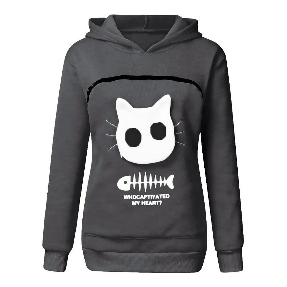 Женская толстовка мешок с нарисованным животным капюшоном топы носить с кошкой дышащий пуловер Блузка