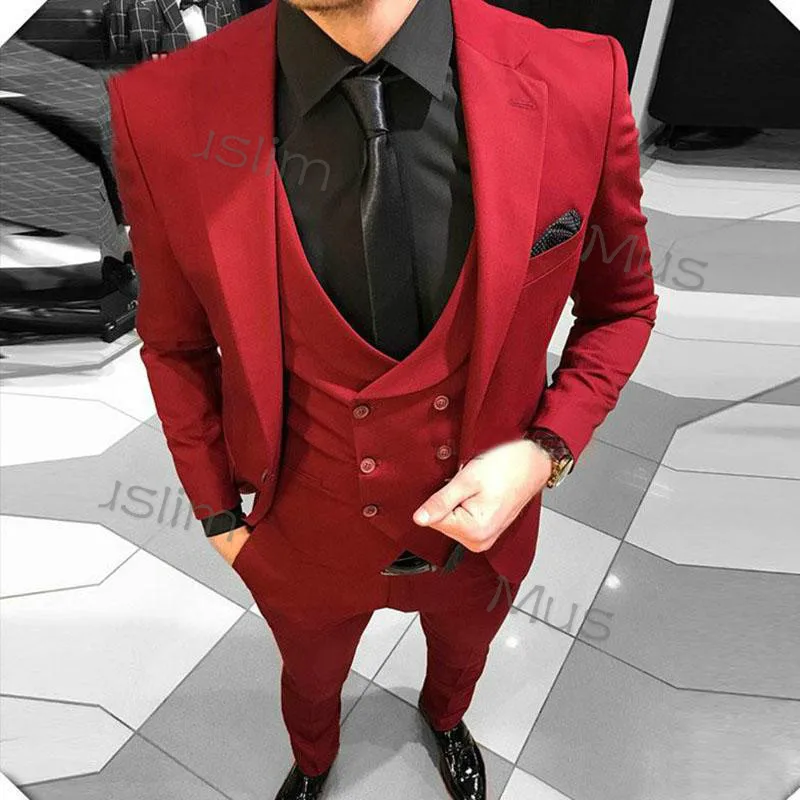 Красные мужские костюмы, двубортные свадебные костюмы для мужчин, куртка для жениха, мужские деловые костюмы по индивидуальному заказу, приталенные повседневные смокинги, Лучший человек