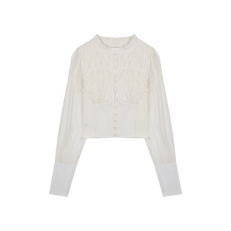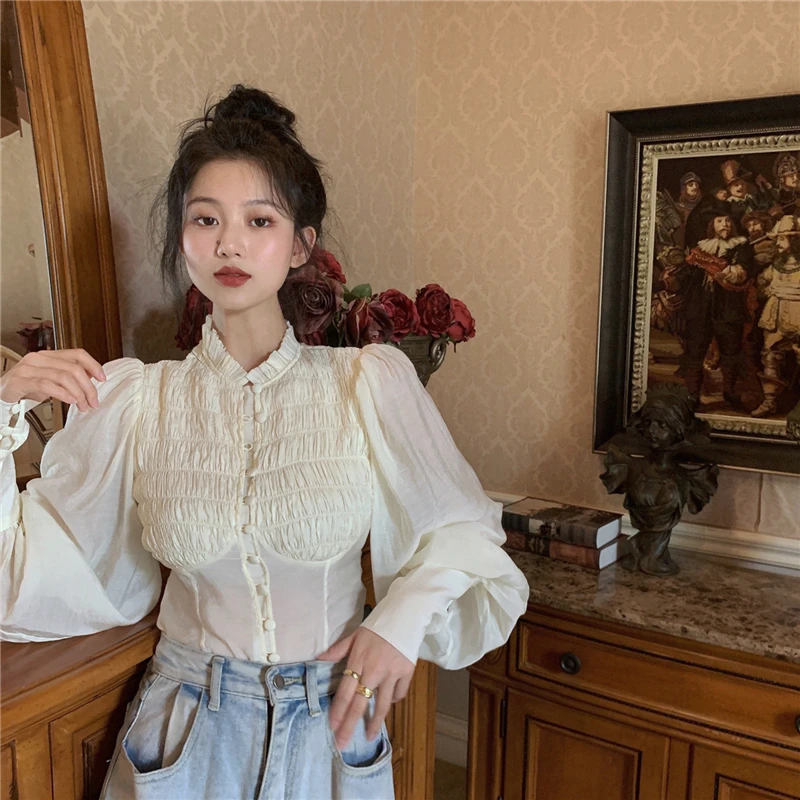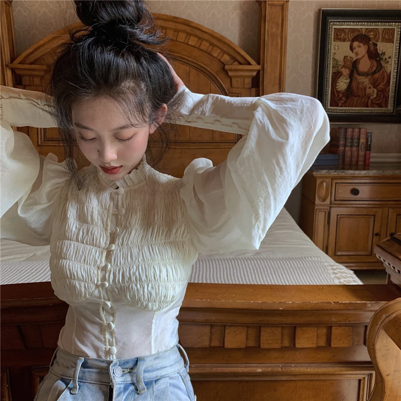 Блузка женская с пуговицами спереди, оригинальный дизайн, приталенная рубашка во французском стиле, с длинным рукавом, Корейская одежда
