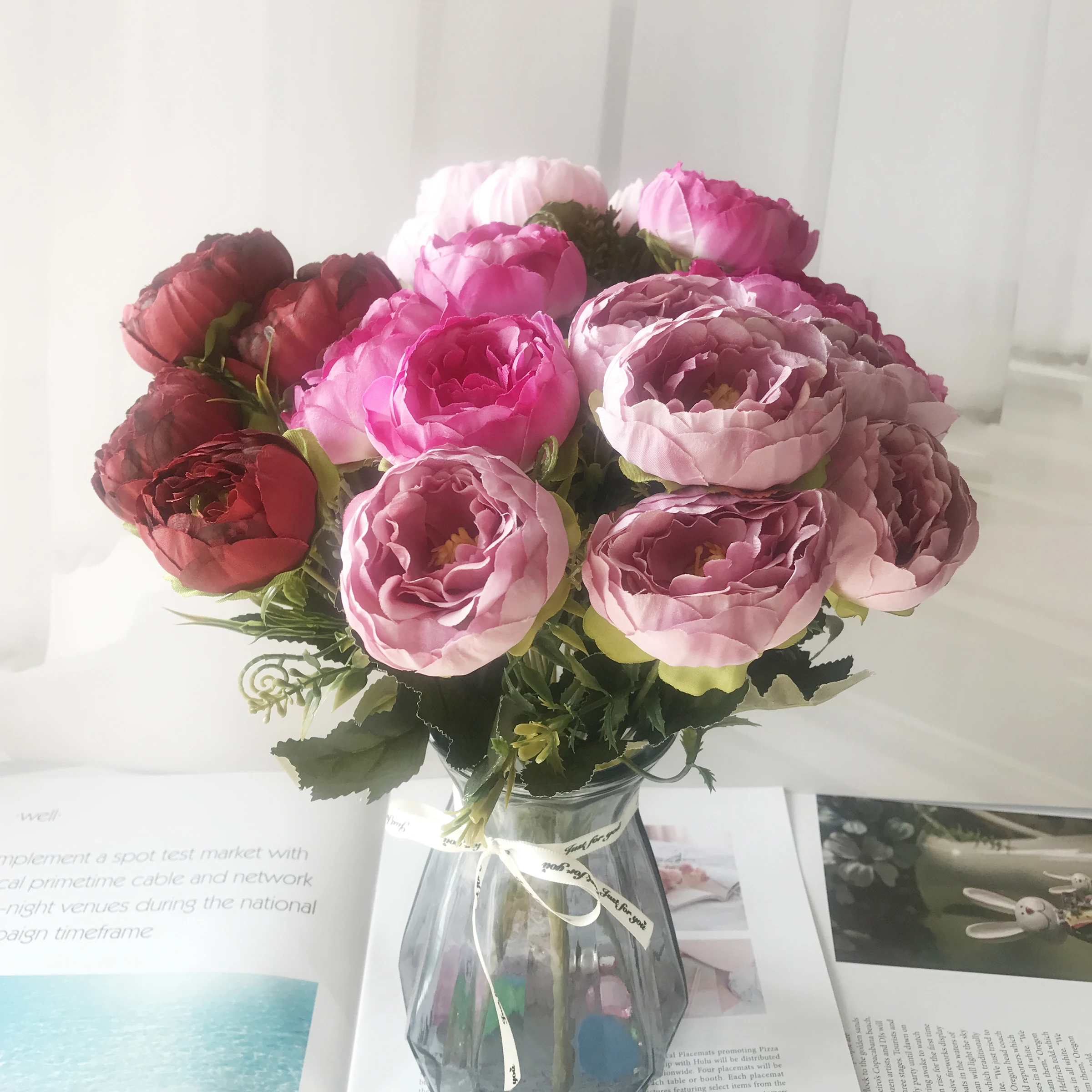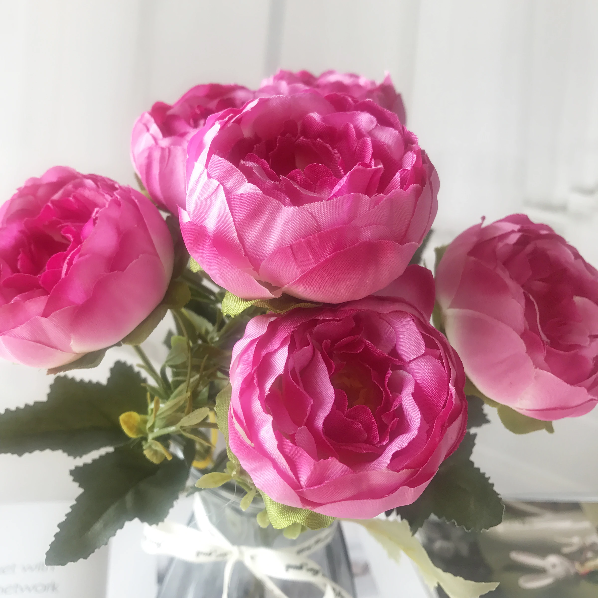 Искусственные цветы, 6 голов, белый пион, чайная роза, осень шелковые искусственные цветы, ваза для самостоятельного изготовления украшения дома, сада, свадьбы, искусственные растения
