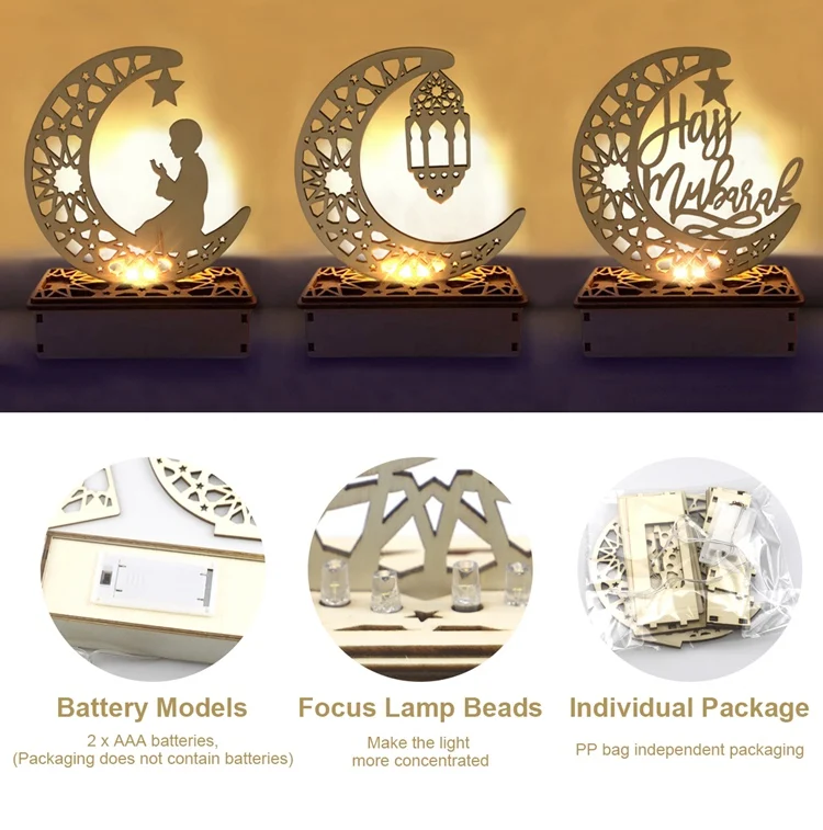 Деревянный мусульманских светодиодный ночной светильник ид мубарак ...