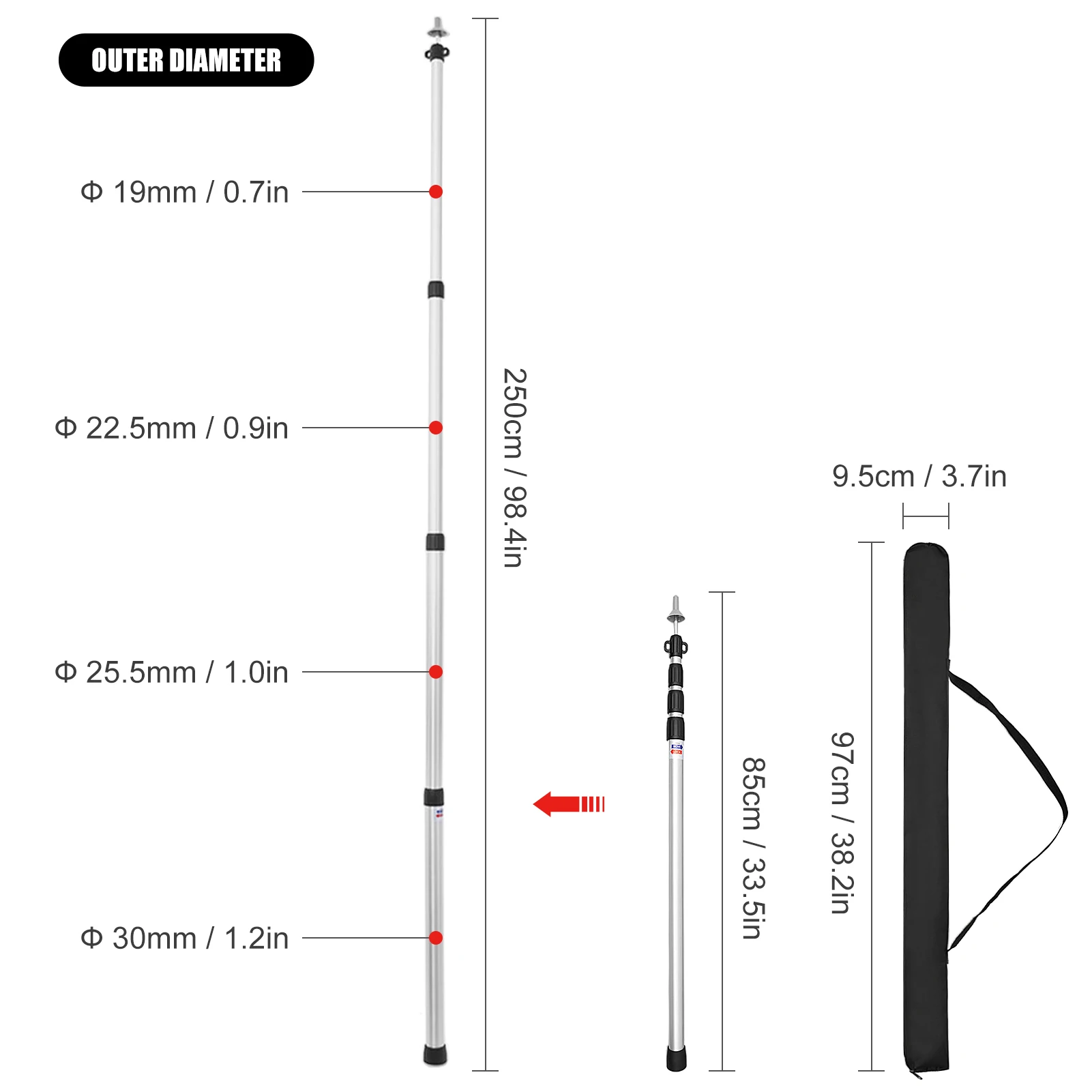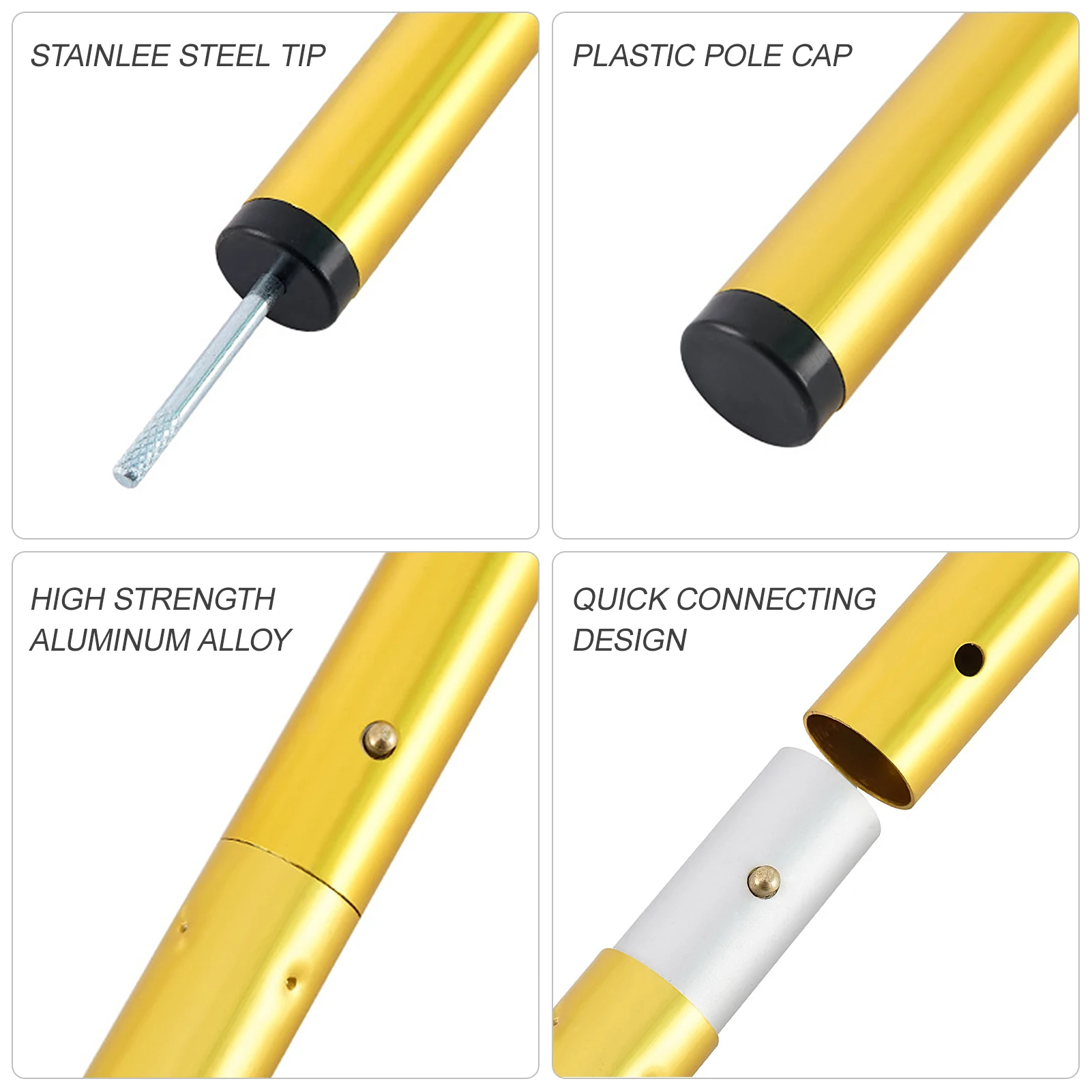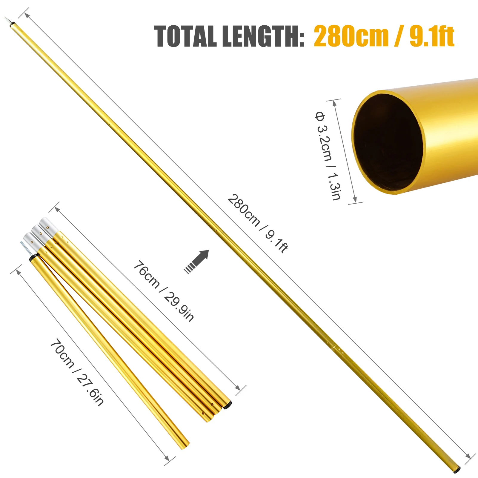 Специально используется в больших тентах, обладает высокой устойчивостью к ветру, простой портативностью и удобным хранением.Особенности:Высокопрочная конструкция из алюминиевого сплава, вес и хорошая прочность на светильник.3,2 см большой диаметр трубы обладает отличной устойчивостью, и это не так легко сломать.4 соединительных секции, всего 280 см (9,1 фута) в длину.Быстрая конструкция подключения позволяет регулировать высоту для требуемой высоты.Быстро устанавливается и снимается, удобно носить и хранить.Идеальный аксессуар для кемпинга, альпинизма, пешего туризма, путешествий, пикника и т. д.Спецификация:Цвет: серебристый/черный/золотой (опционально)Материал: алюминиевый сплавВнешний Диаметр: 3,2 см/1,3 вДлина изделия: 76 см/29,9 дюймаОбщая длина: 280 см/9,1 фут (не включает наконечник)Вес: прибл. 1150g/2,5 lbПосылка:1 * опорный столб
