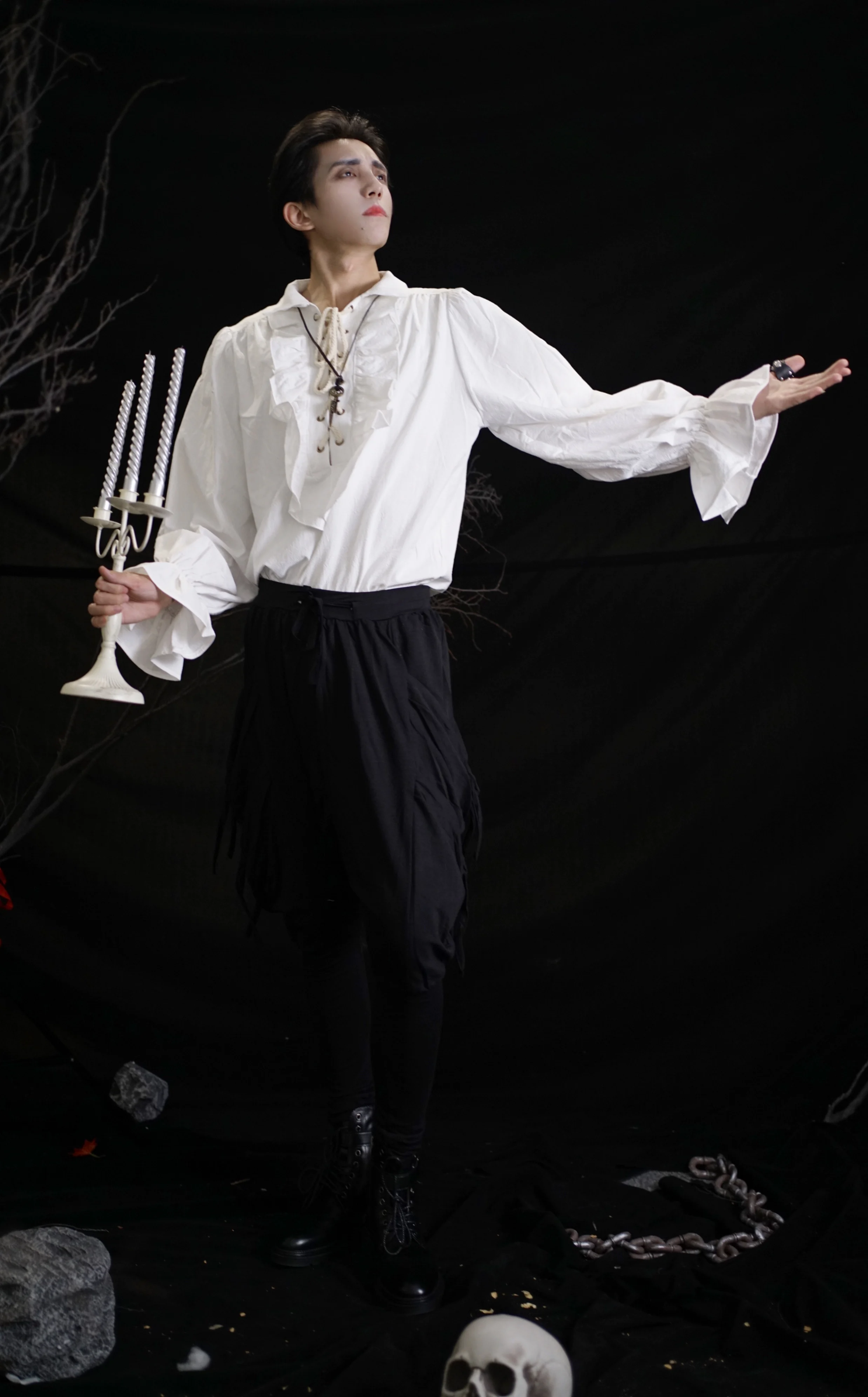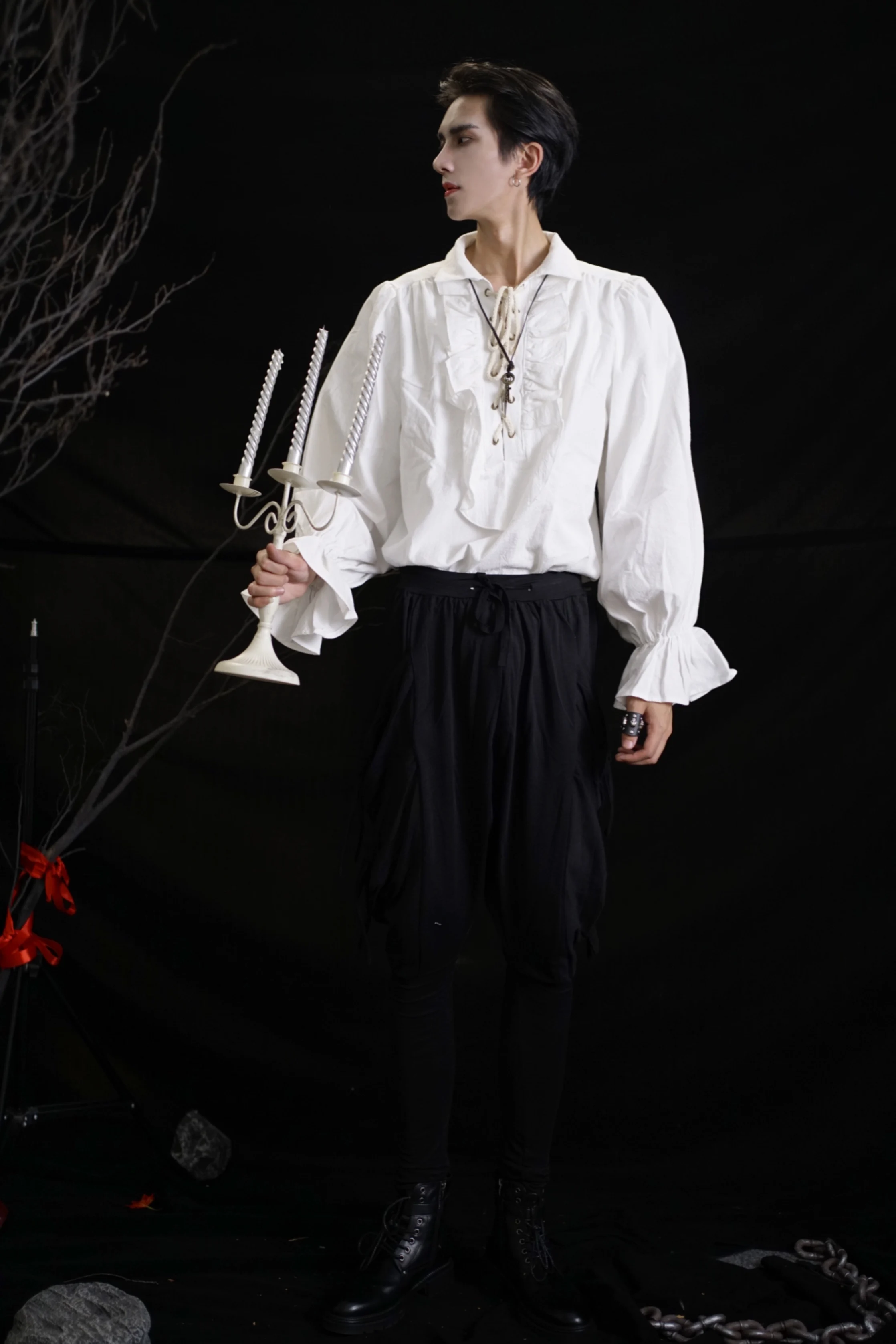 Повседневная Готическая рубашка с длинным рукавом, мужские рубашки с длинным рукавом, с завязками, большого размера, размеры Блузки