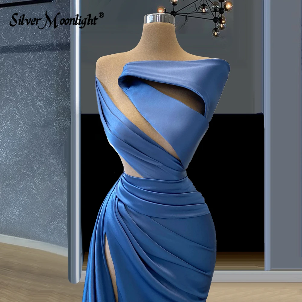 Женское длинное вечернее платье с юбкой-годе, синее платье без бретелек с разрезом, с высоким разрезом сбоку, в арабском стиле, Дубай, 2021