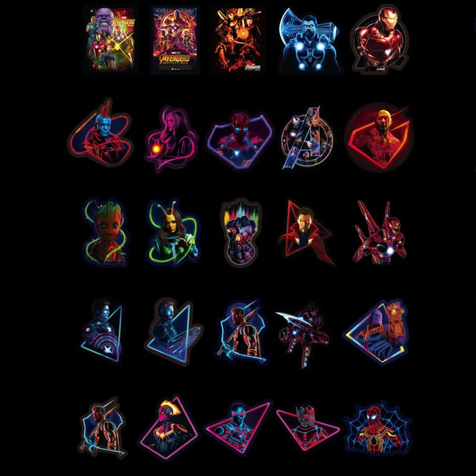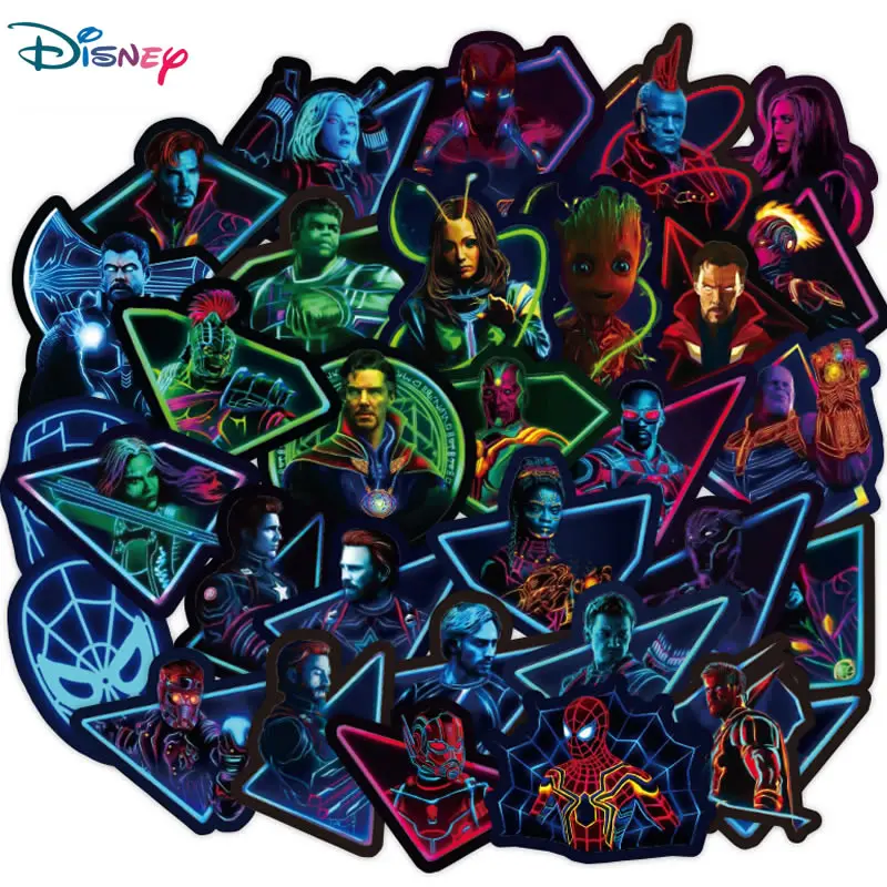 50 шт. Disney с принтами "Marvel", "Мстители", Наклейки герои аниме Водонепроницаемый картонные багажные СКЕЙТБОРД гитара ноутбук Стикеры для девочек детская игрушка