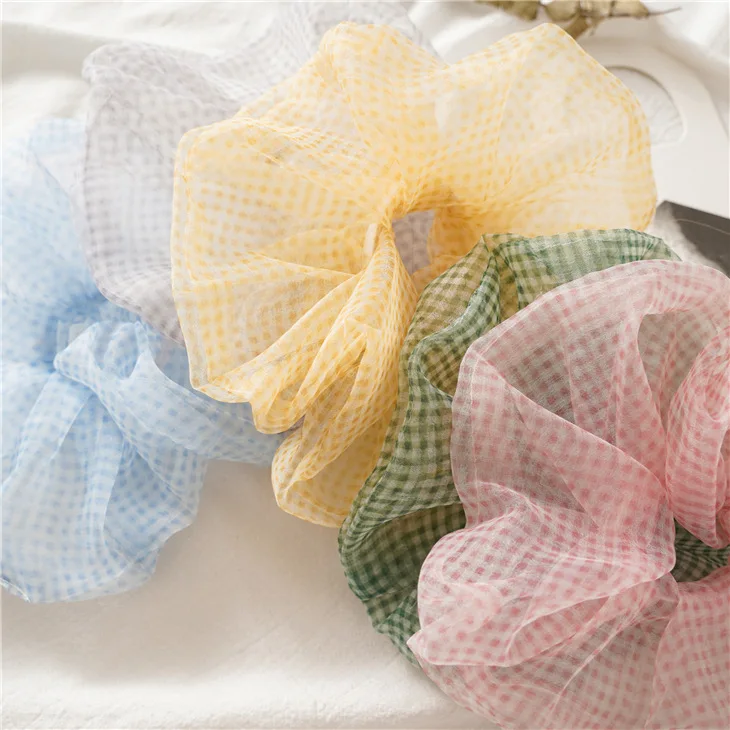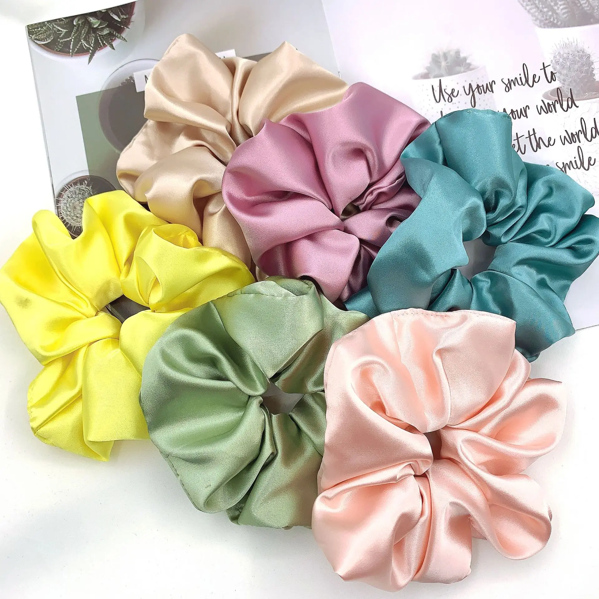 Резинки для волос пастельных цветов женские, шелковые эластичные заколки большого размера из органзы, однотонные аксессуары для волос, 2021