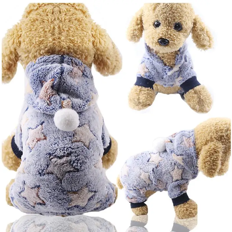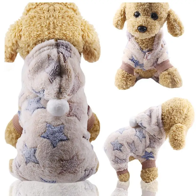 Одежда для собак, Пижама, флисовый комбинезон, зимняя одежда для собак, четыре лапы, теплая одежда для домашнего питомца, костюм для маленькой собаки, звезды