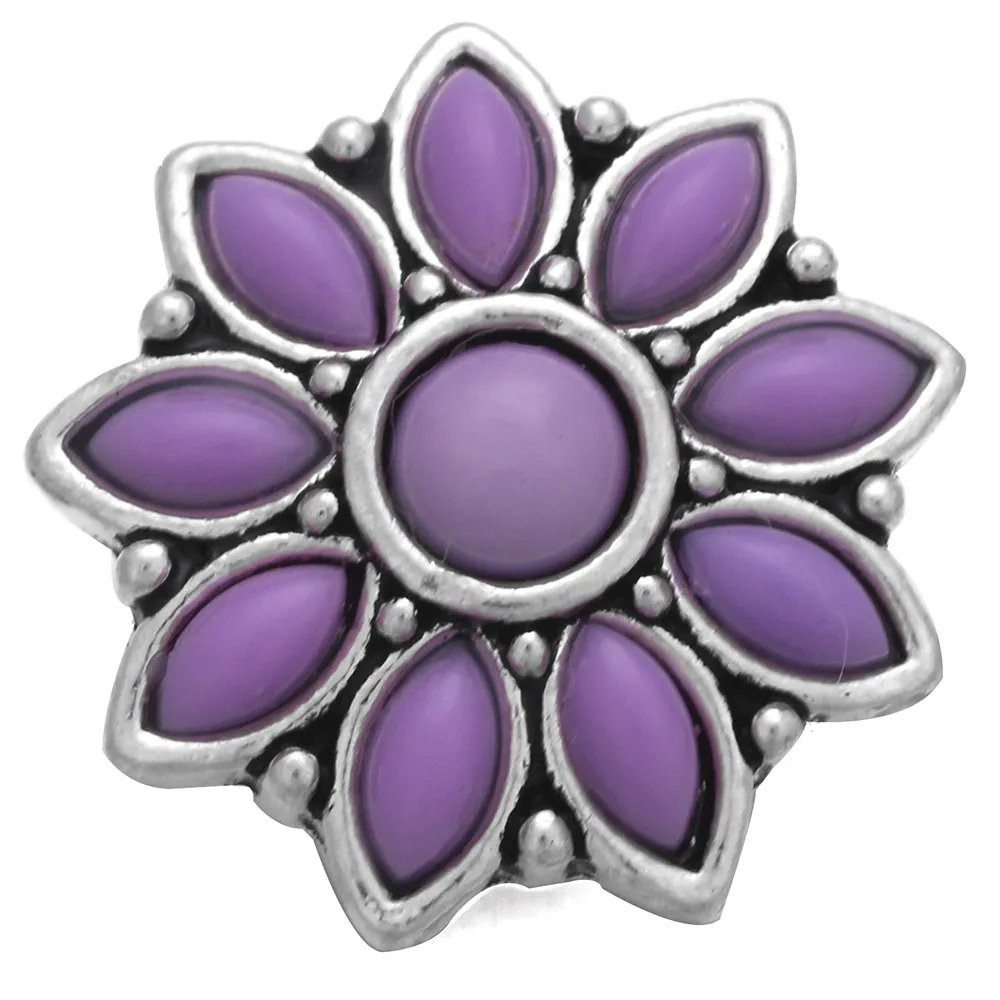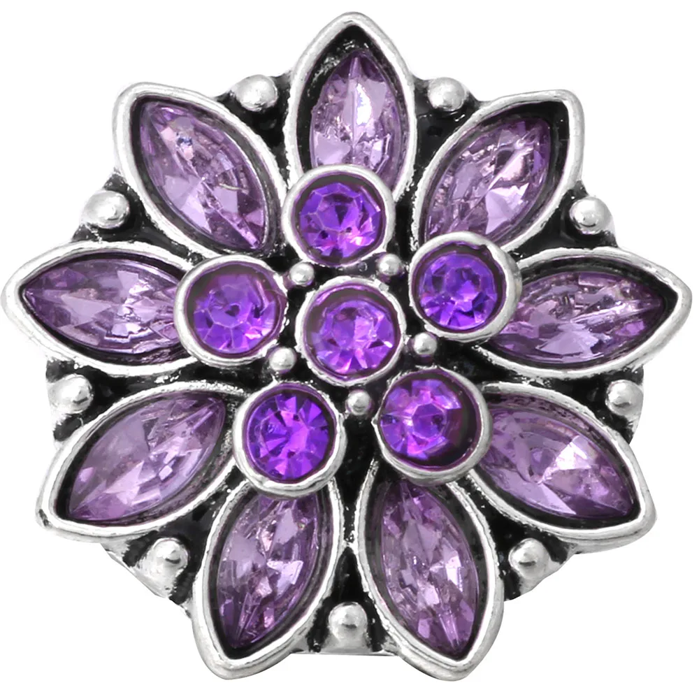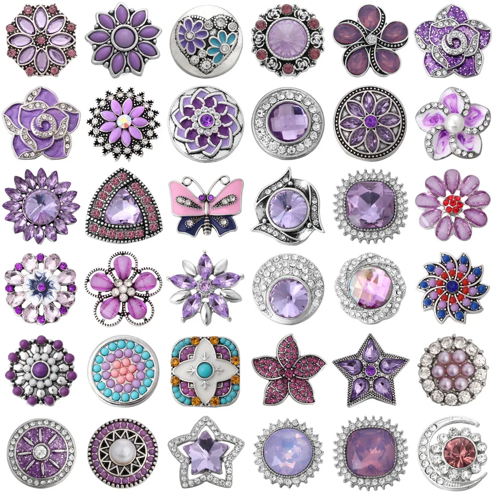 6 шт.лот смешанные фиолетовые ювелирные изделия 18 мм кнопки ювелирные изделия горный хрусталь цветок металлические защелки ювелирные изделия подходят для кнопки ожерелья