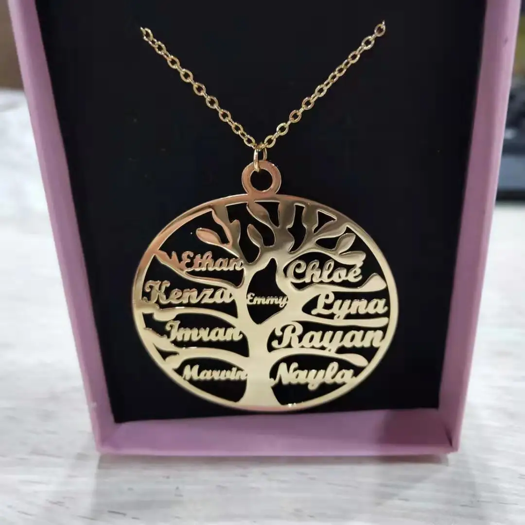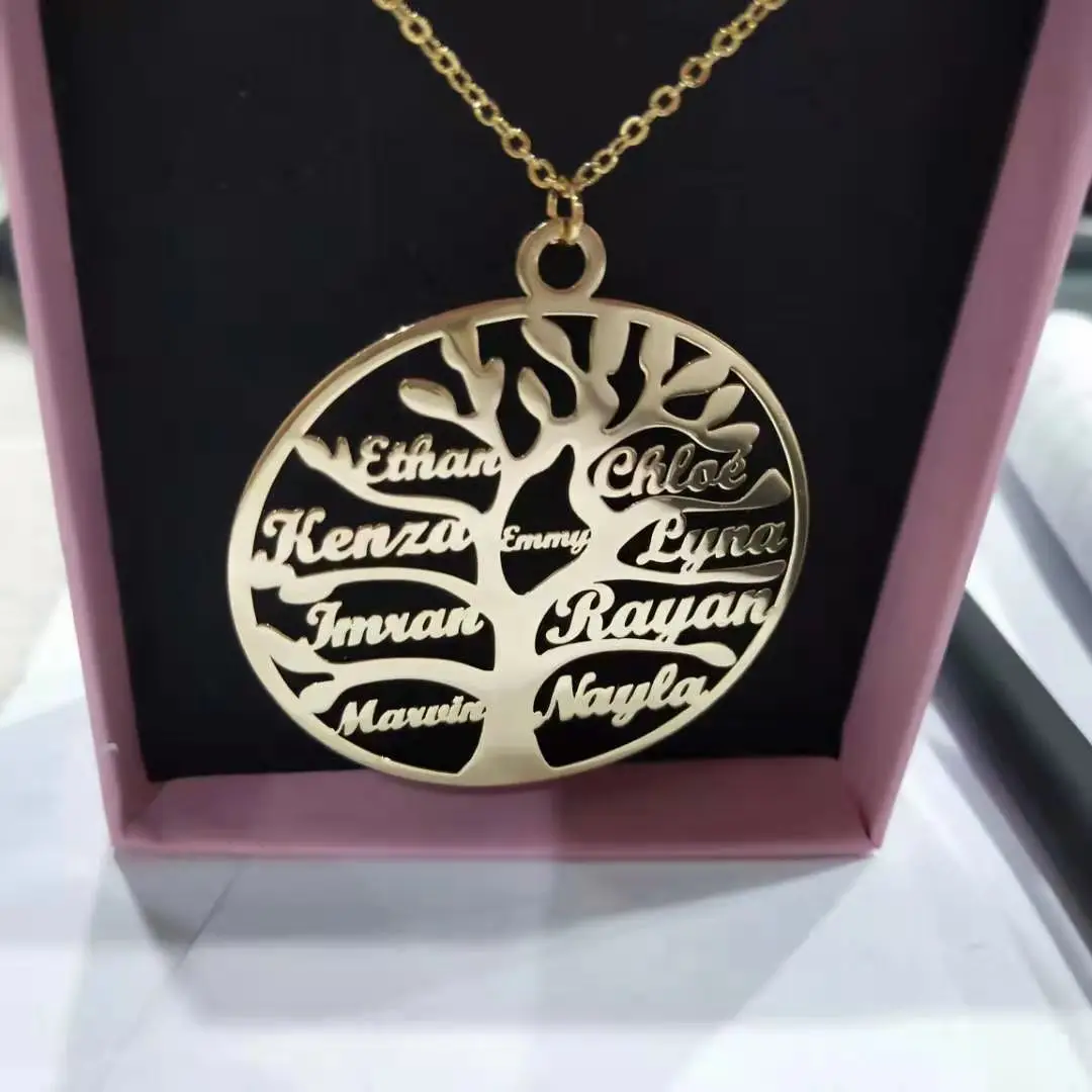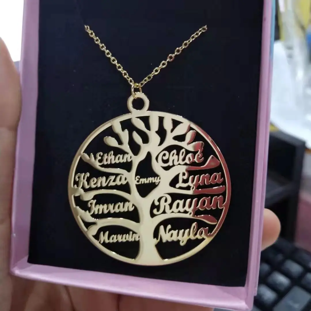 Ожерелье DOREMI с именем семейного дерева до 9 именами, ожерелье из нержавеющей сталиожерелье с деревом жизни, ювелирные изделия для женщин и мужчинна заказ