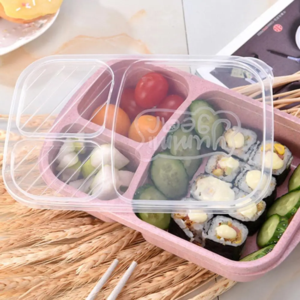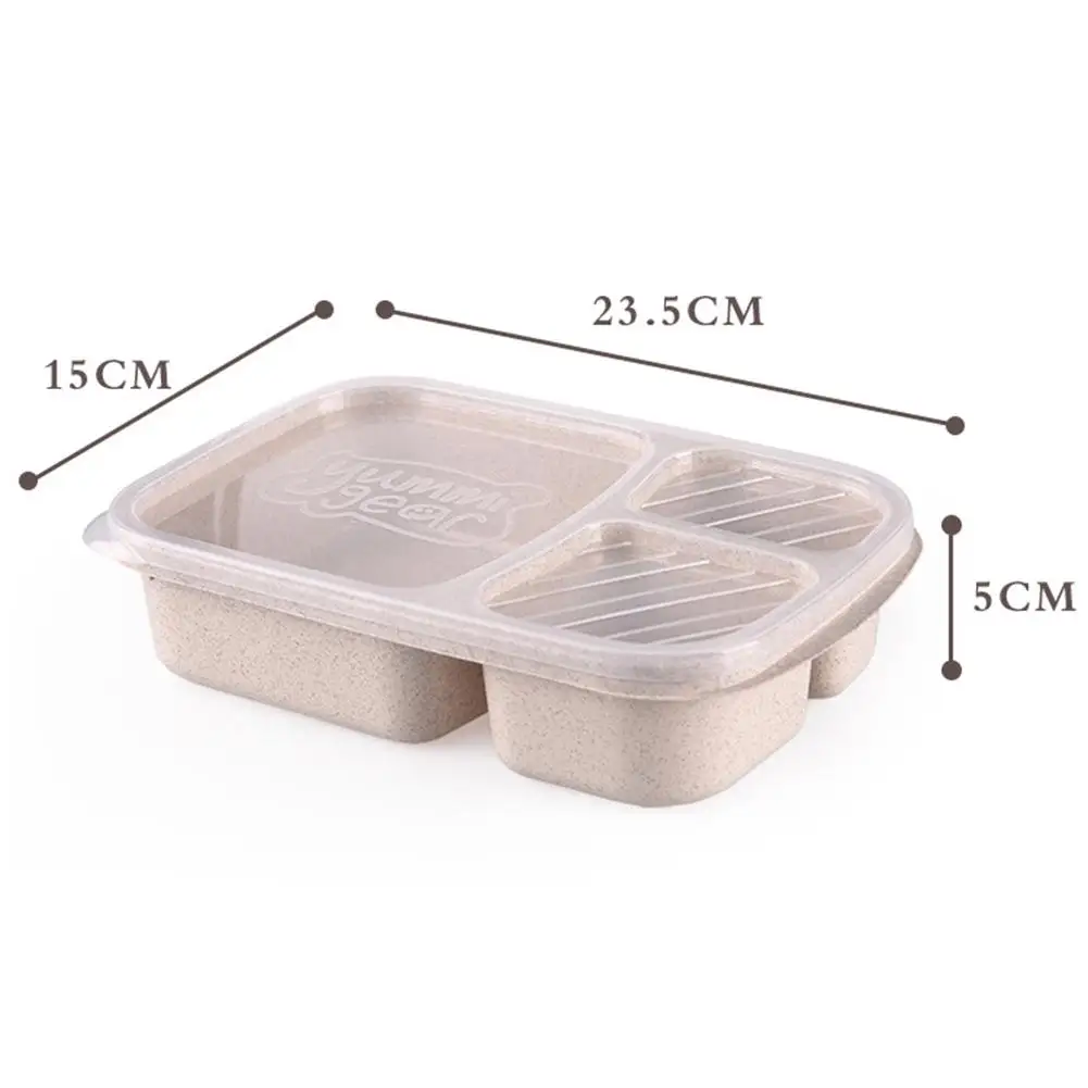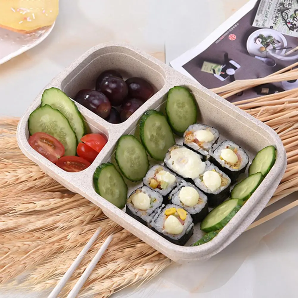 Практичный полипропиленовый Ланч-бокс с 3 отделениями, контейнер для хранения еды для детей и взрослых, контейнер из соломы со вкусом пшеницы для пикника, посуда