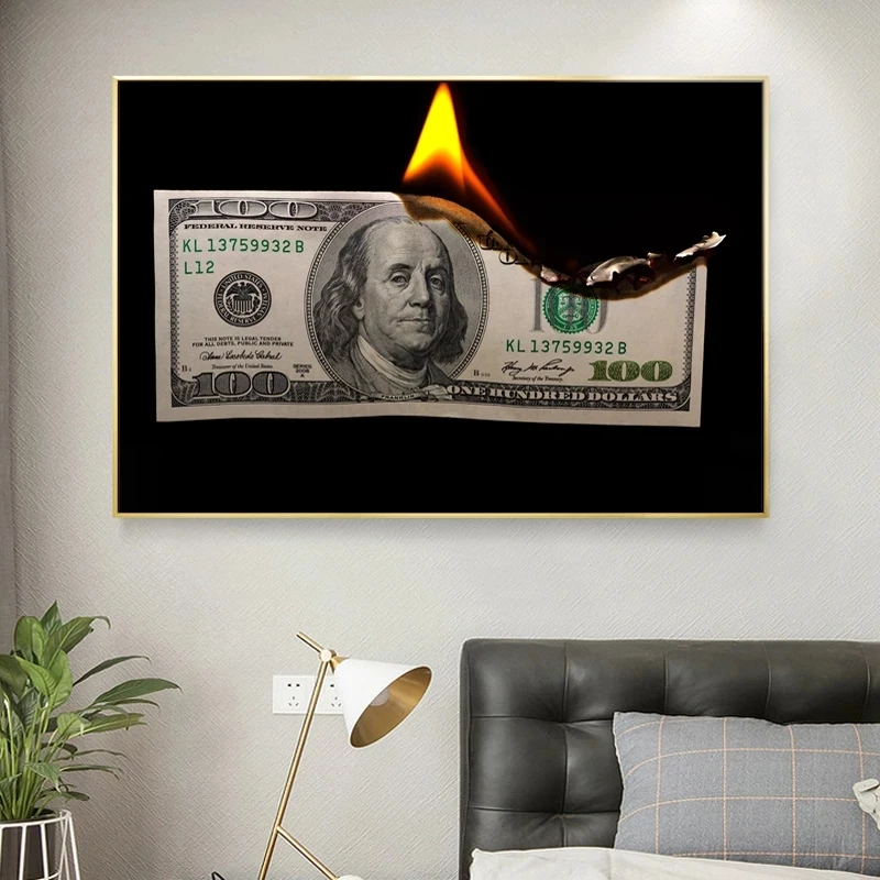 Картина на холсте с изображением сжигающего 100 доллара, Билла, настенный плакат, Декоративная Настенная картина в скандинавском стиле для декора гостиной