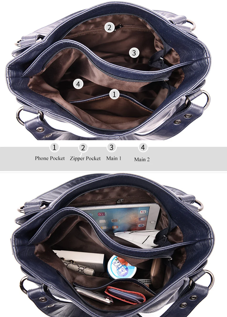 Несколько карманов большой емкости, Может держать мобильные телефоны, планшеты, косметику, кошельки, зонты и другие общие принадлежности