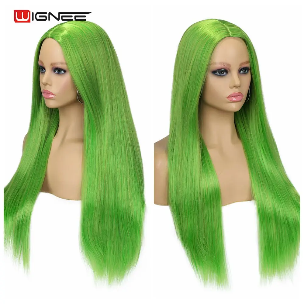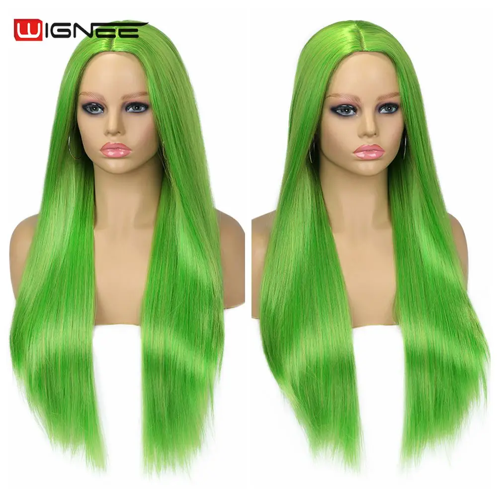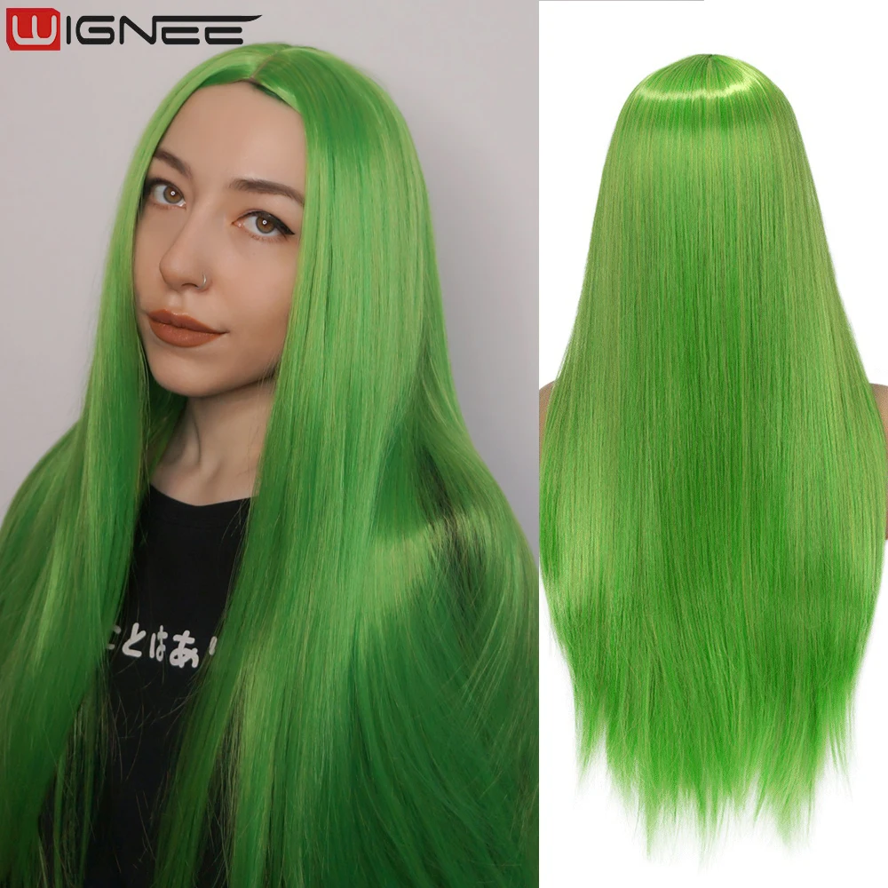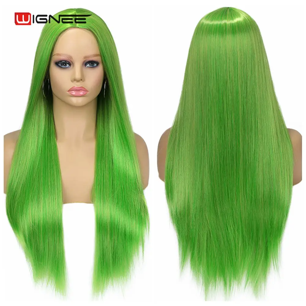 Wignee, длинные прямые травянистые зеленые термостойкие парики из синтетического волокна для женщин, парики из натуральных волос для косплея
