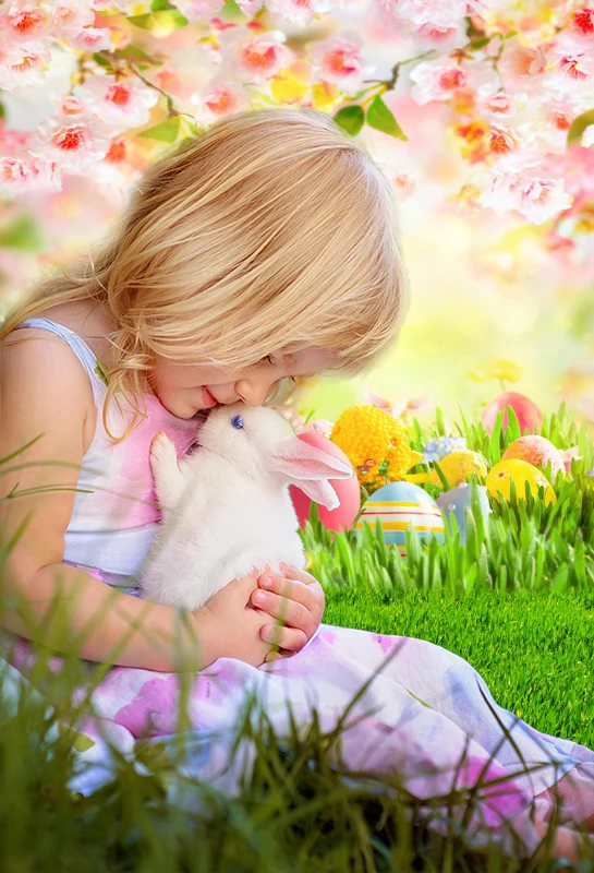 Фон для фотосъемки с изображением весенних пасхальных цветов, яиц, кролика, кролика, зеленой лужайки, деревянного пола, фермы, сарая, Фотостудия
