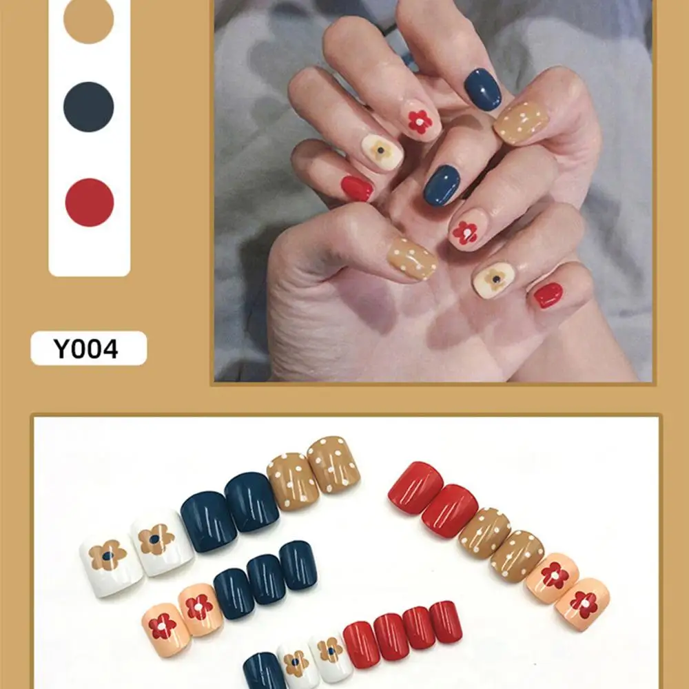 24 шт. поддельные ногтей с дизайном накладные ногти для ног носки ч...