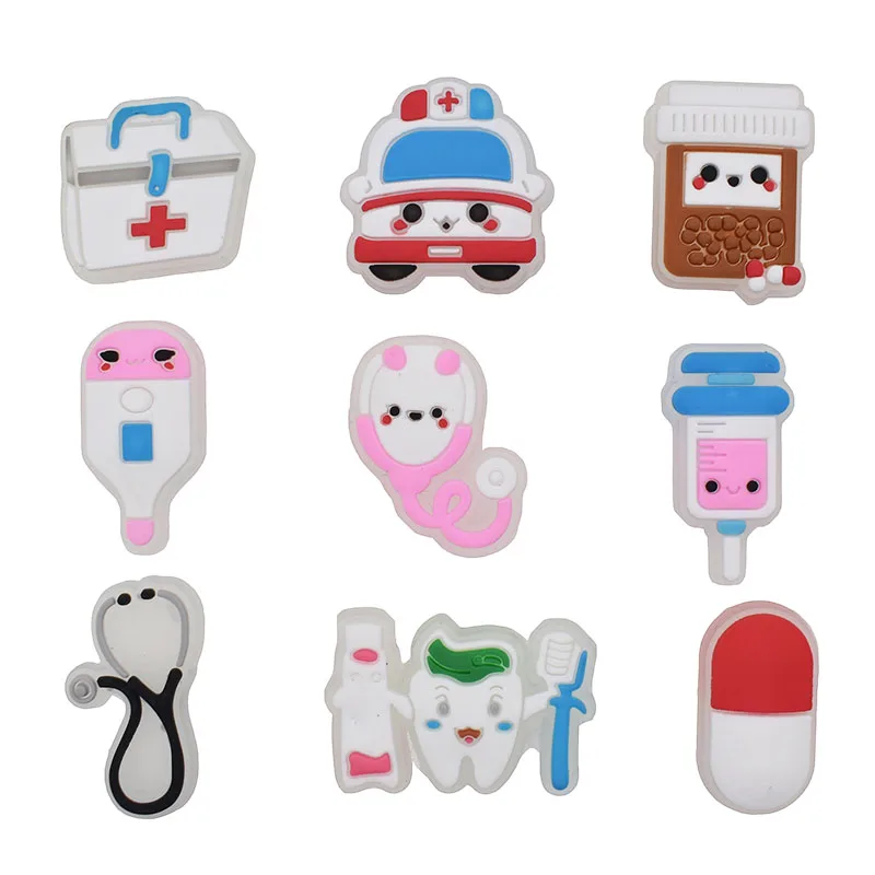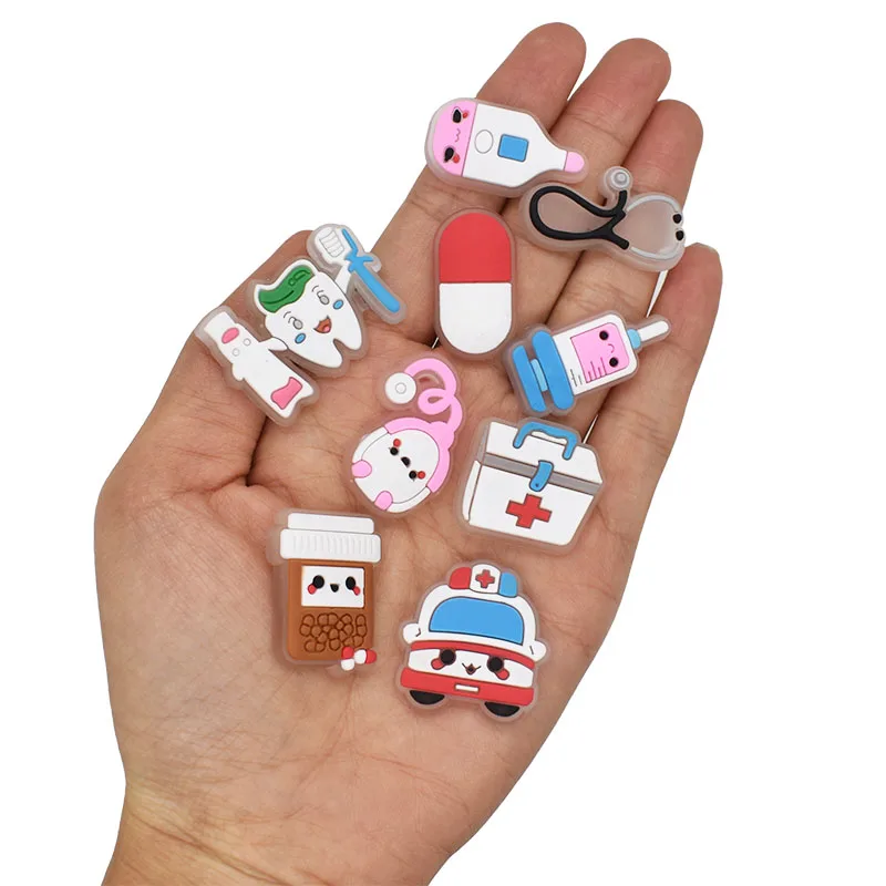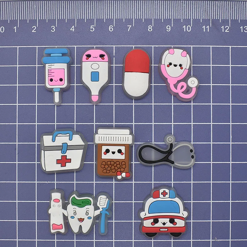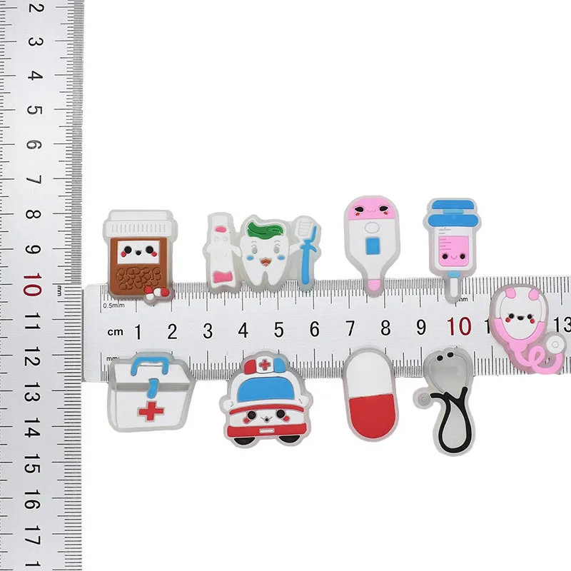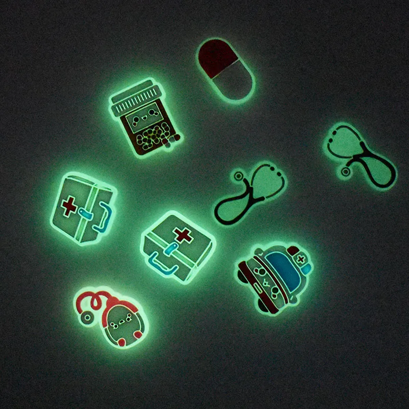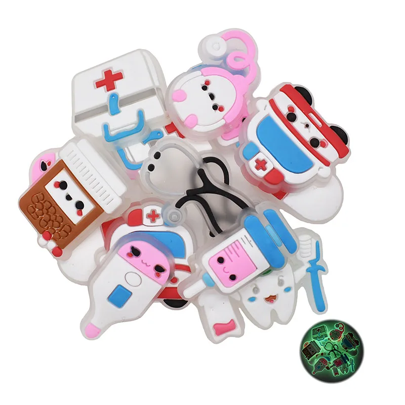10 шт.лот ПВХ плоские с обратной стороны Светящиеся в темноте Медицинский Набор милый стетоскоп шприц прозрачное дно DIY аксессуары заплатки