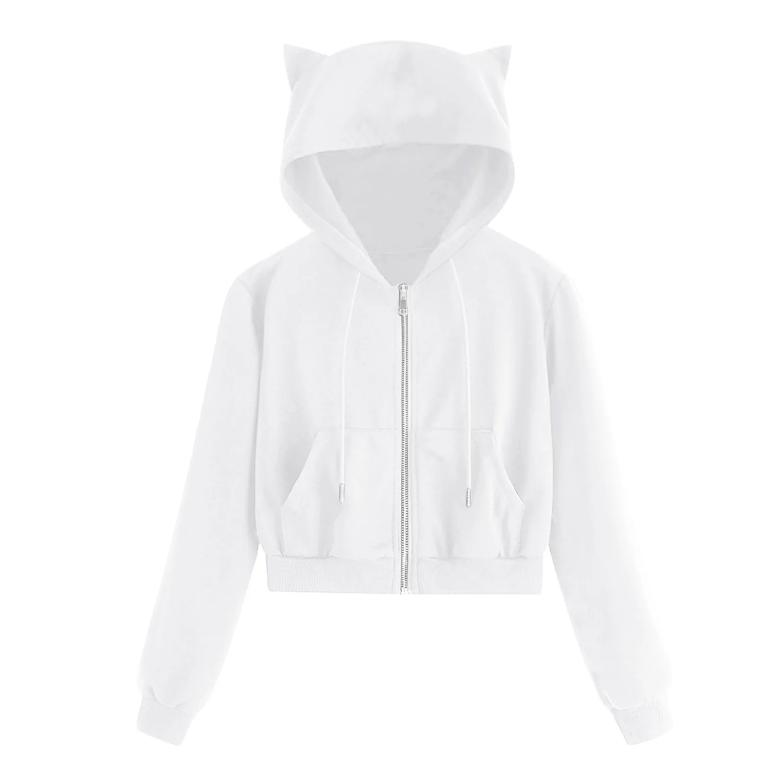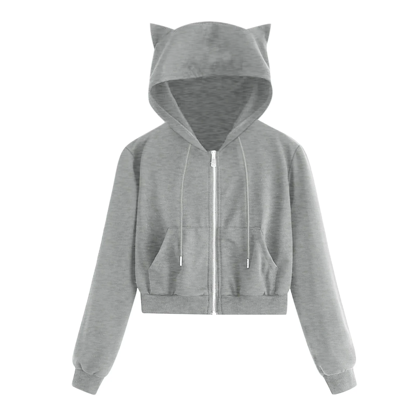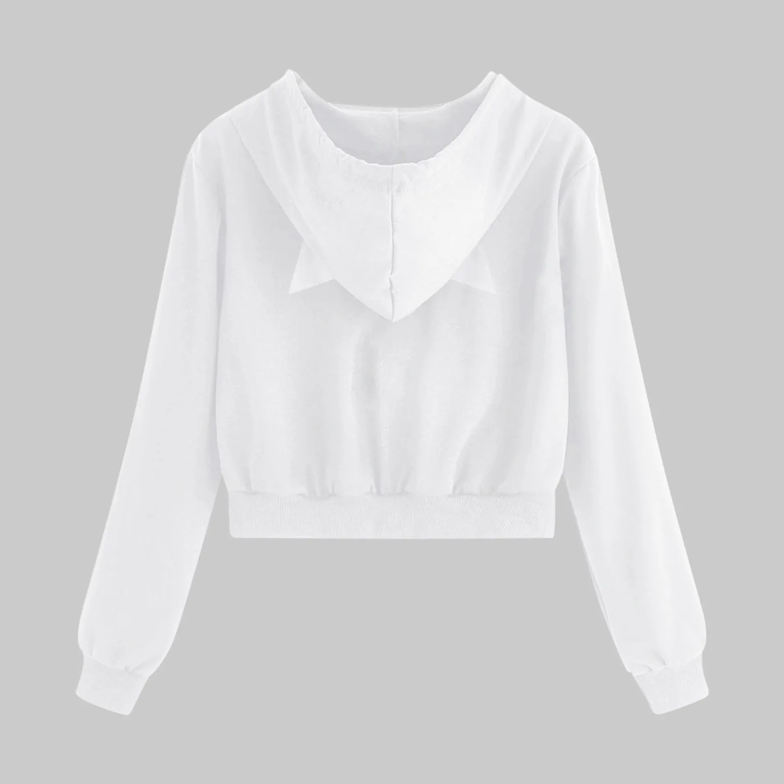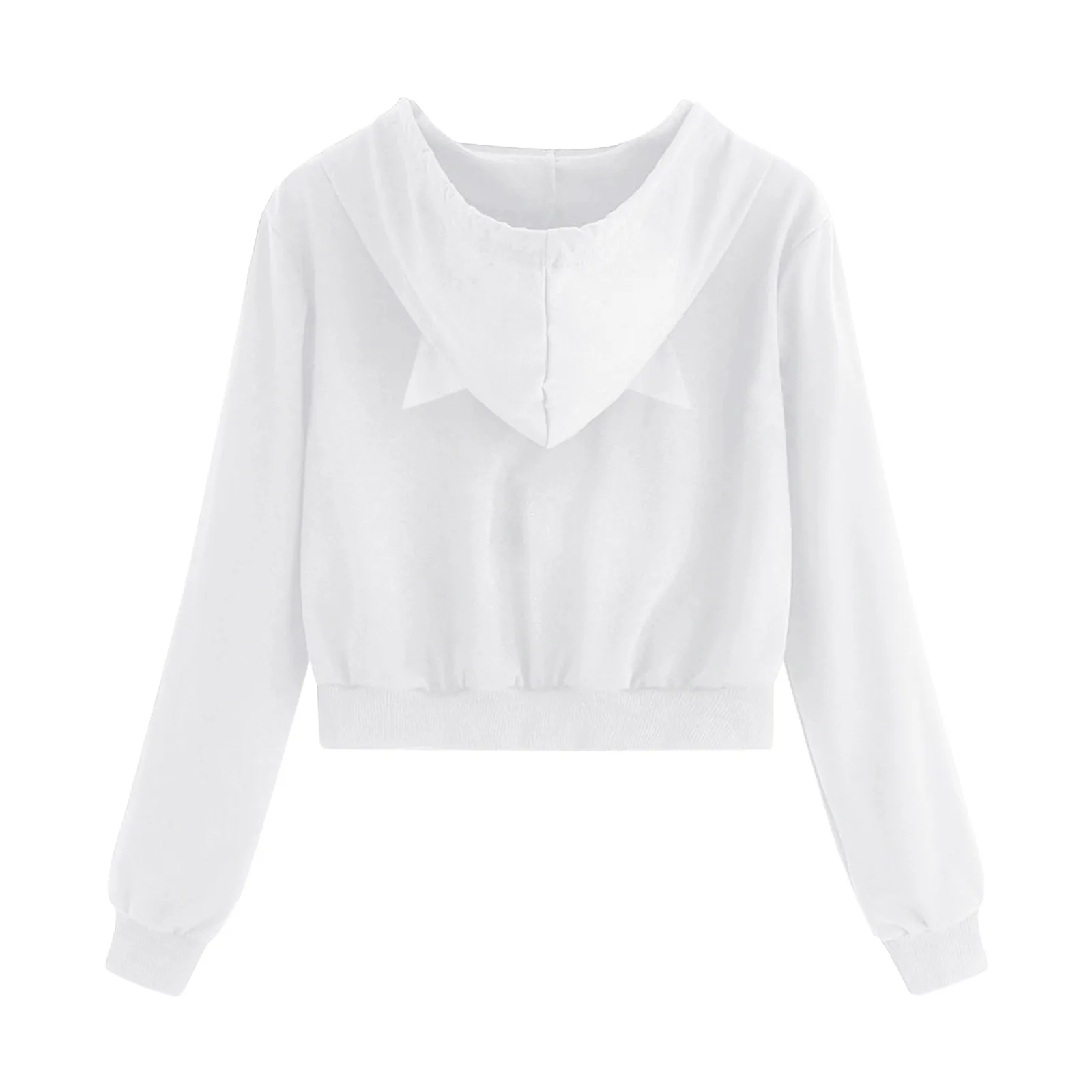 Свитшот женский с длинным рукавом, милое худи с кошачьими ушками, короткая Осенняя уличная одежда в стиле Харадзюку, с капюшоном и карманами, # SR