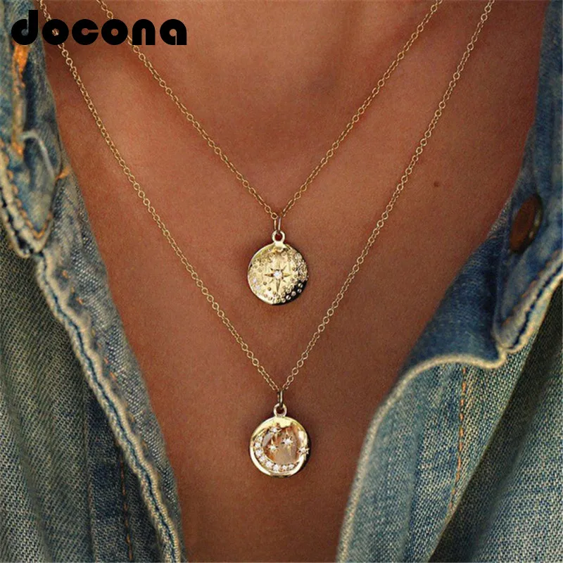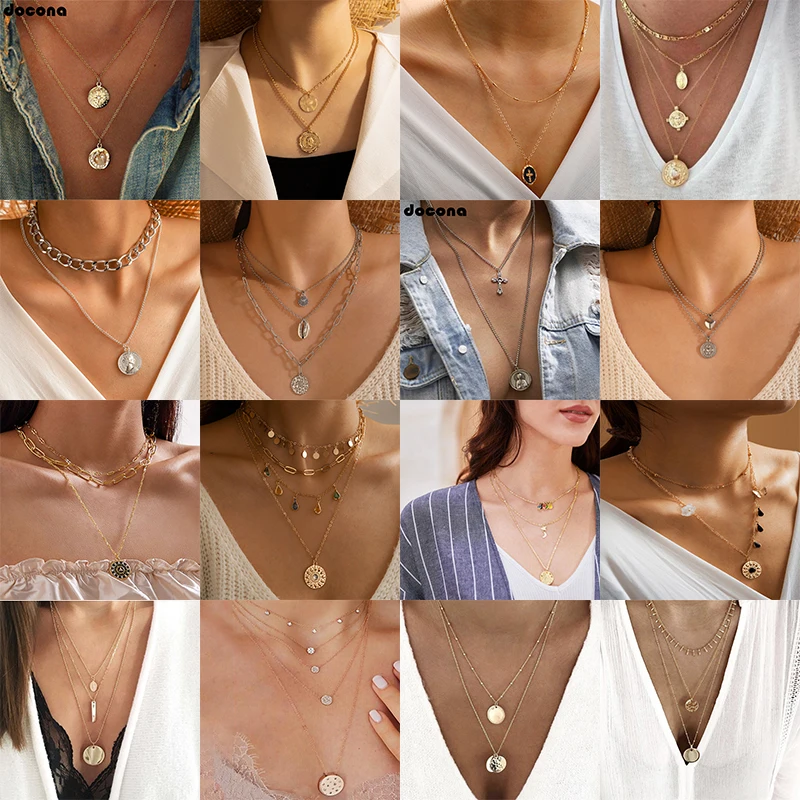 Docona Boho монета с портретом ожерелье с подвеской для женщин, разноцветные капли воды, многослойное ожерелье из сплава, женские вечерние ювелирные изделия воротник