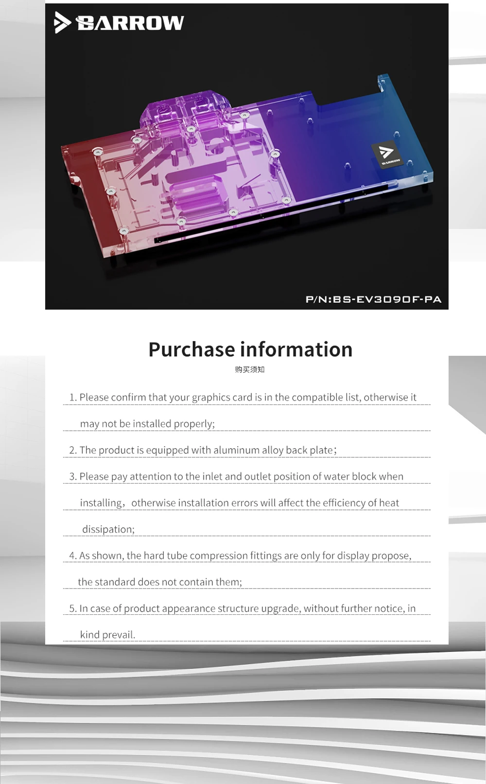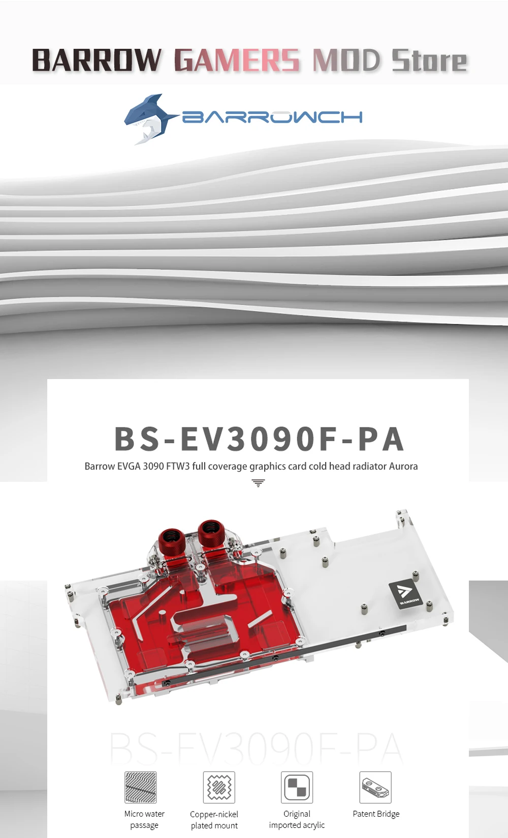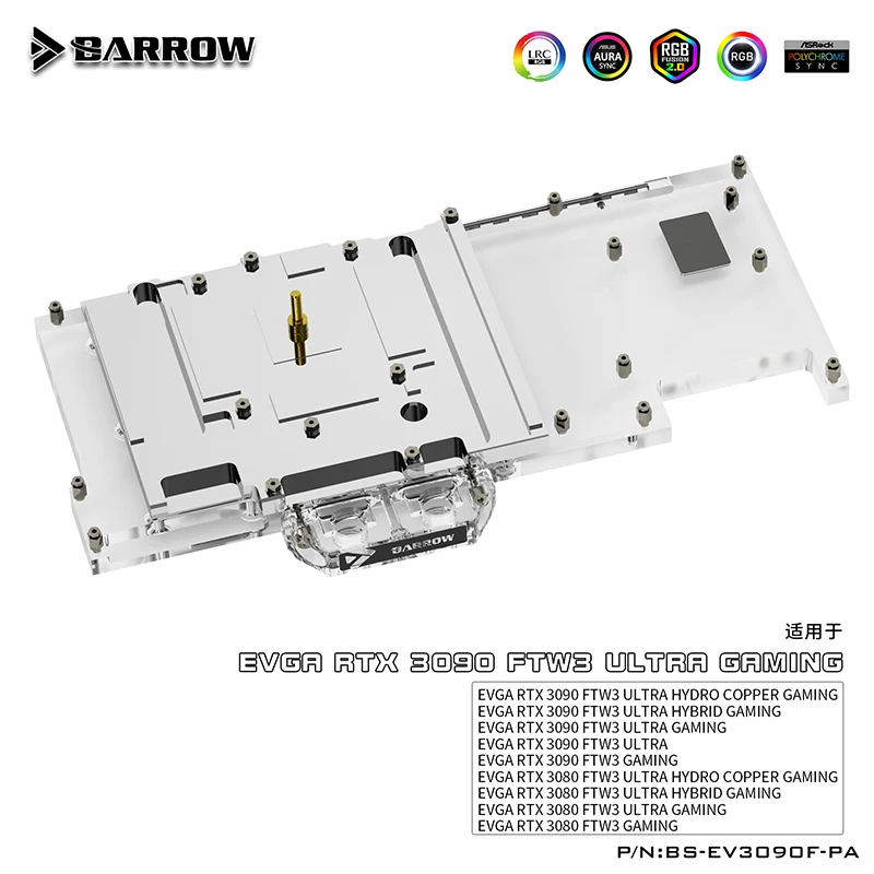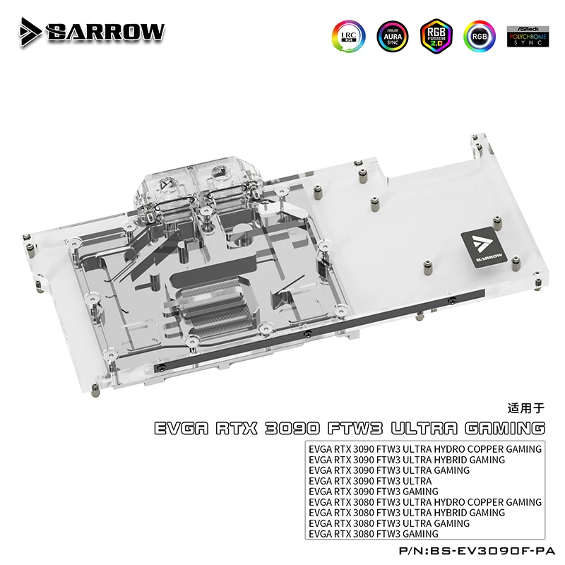 BARROW GPU Active Backplate Block для EVGA RTX 30903080 FTW3 ULTRA GAMING, печатная плата, задняя память (VRAM), VGA, охлаждение