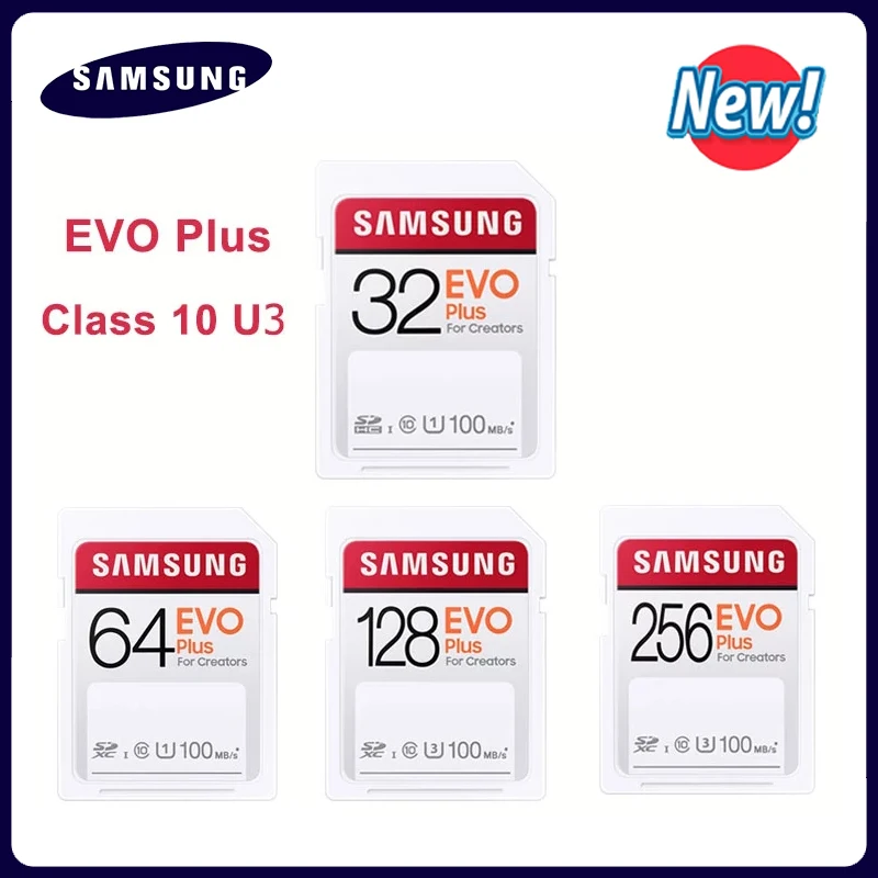 Карта памяти SAMSUNG EVO PlusPRO, SD-карта C10 на 128 ГБ, 32 ГБ, 64 ГБ, 256 ГБ, UHS-I, tarjeta sd для видеокамер 4K и FHD