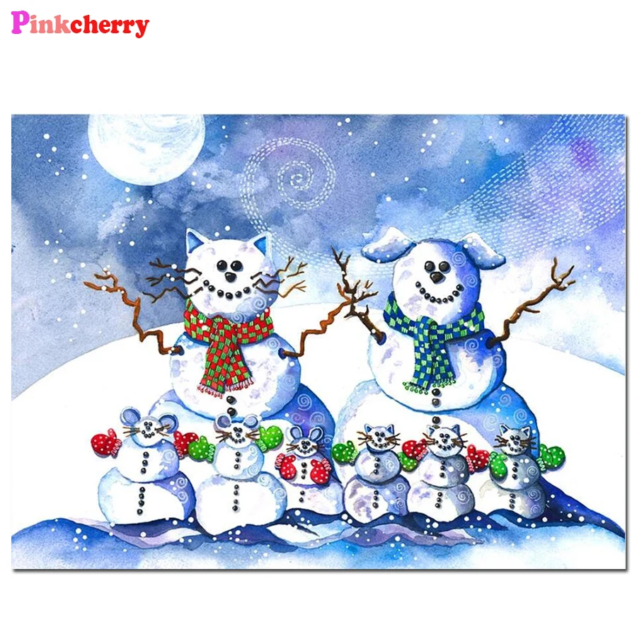 Diy Набор для рисования с круглыми камнями и полотном вышивка "Снеговик" кошки, мозаика, алмазная живопись полная квадратная дрель картина Стразы футболка с забавным мультипликационным принтом Art