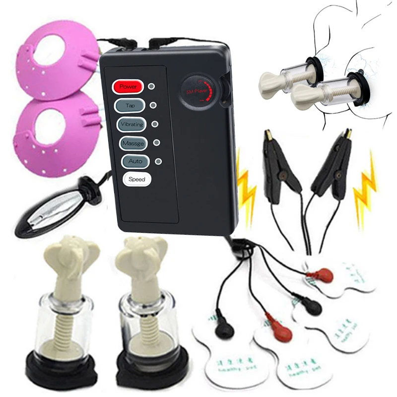 БДСМ силовая коробка, электро шок Пульс Анальная пробка мастурбатор электрический стимулятор соски зажимы массажные подушечки, Секс Инструменты для женщин