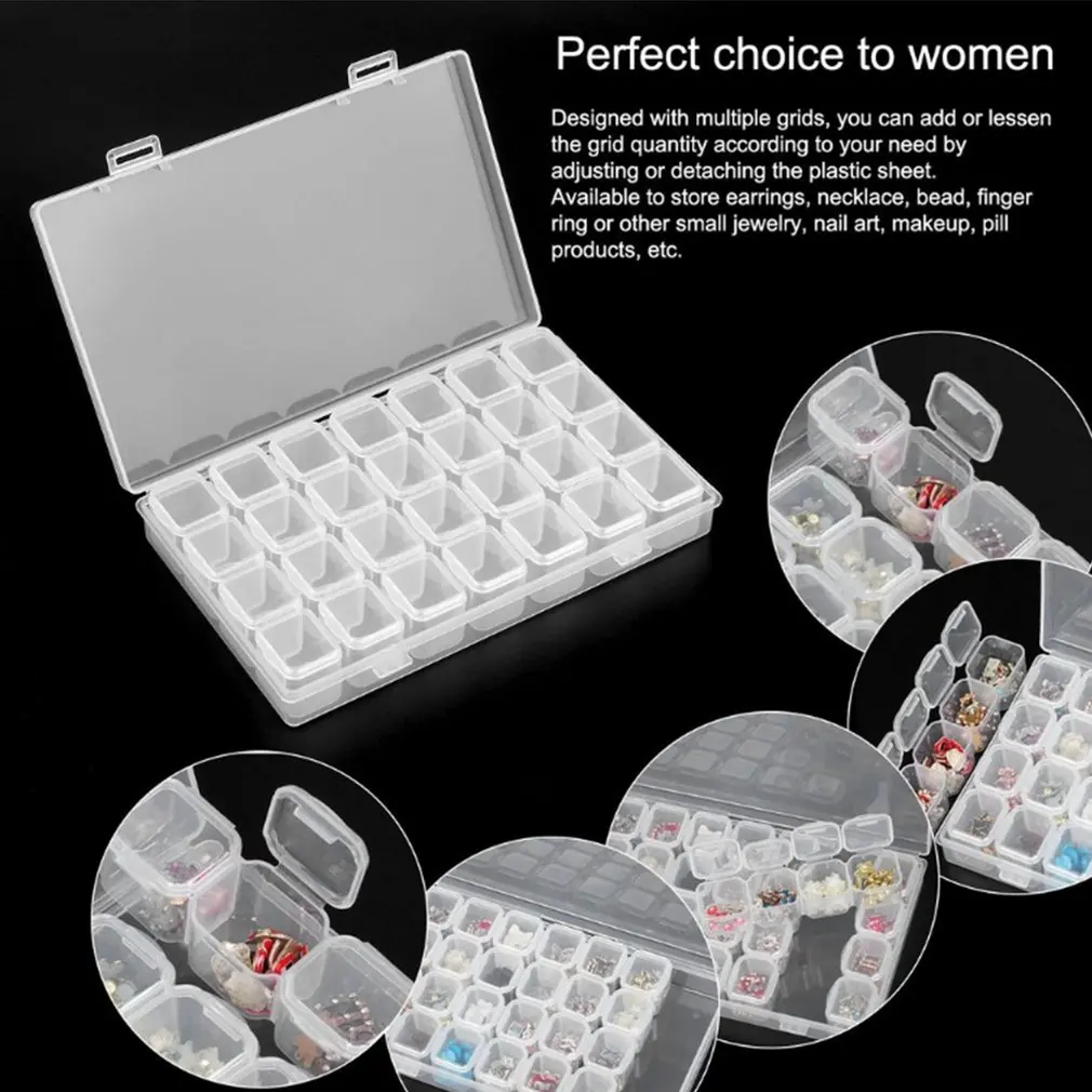 Пустой органайзер, 28 ячеек, прозрачные сетки отделений, блестящий контейнер для хранения страз драгоценный кристалл бисера