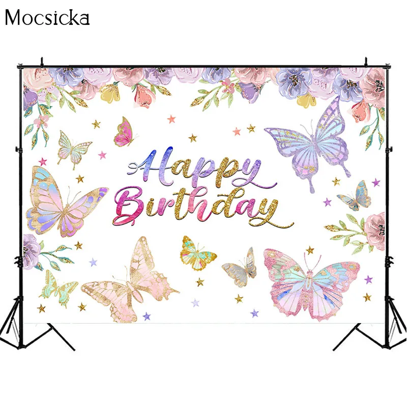 Mocsicka розовый фон для дня рождения с бабочками для девочек декор...