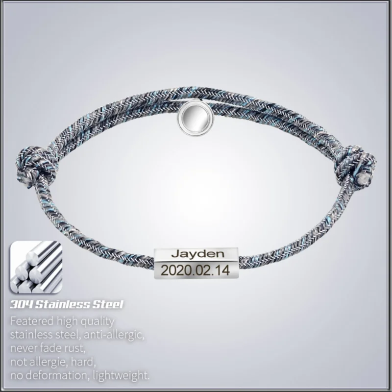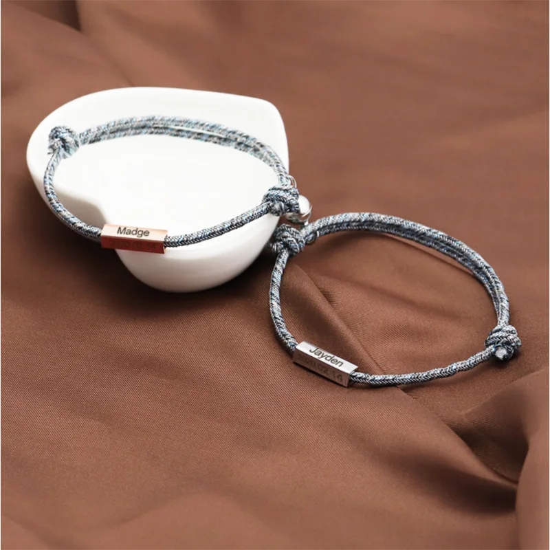 Регулируемая длина, магнитный браслет для пары с буквами, персонализированный плетеный браслет с выгравированным именем, Подарок на годовщину унисекс