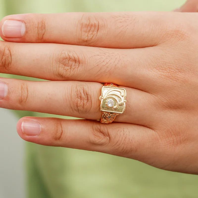 Кольцо золотого цвета с рисунком благословения, фирменное украшение...