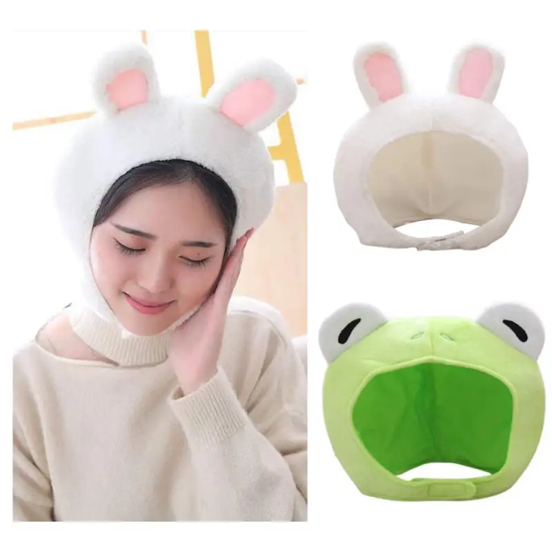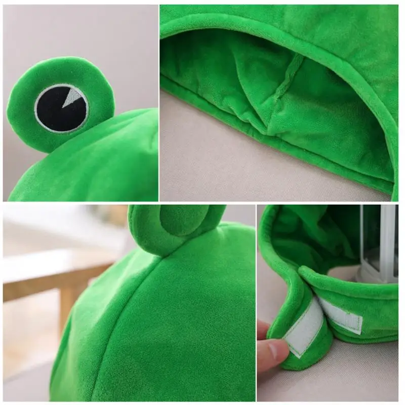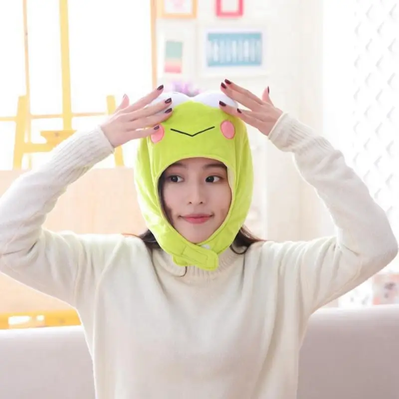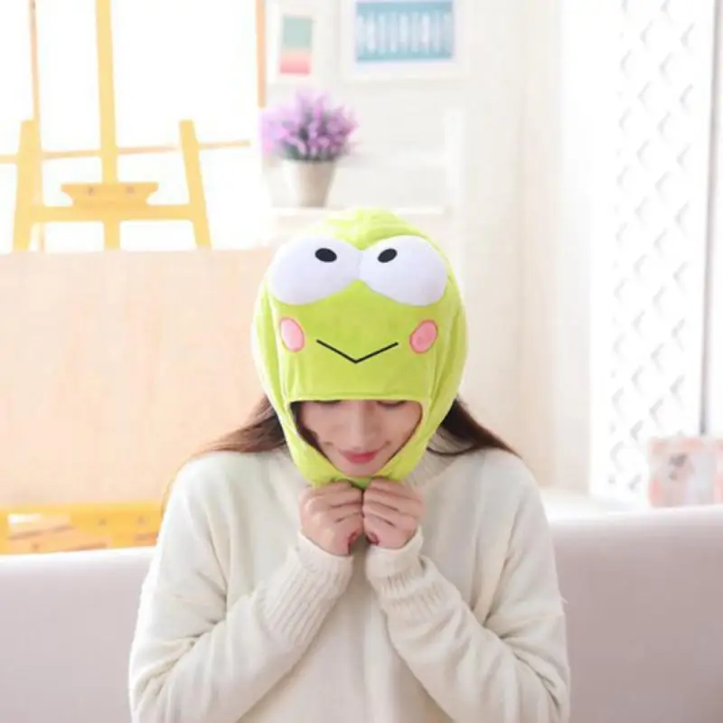 Милая зеленая лягушка с большими глазами, плюшевая шапка, зимняя шапка с ушками, вечерние секс, шарф для вечернего платья, забавная мультяшная плюшевая шапка, аксессуары для костюма