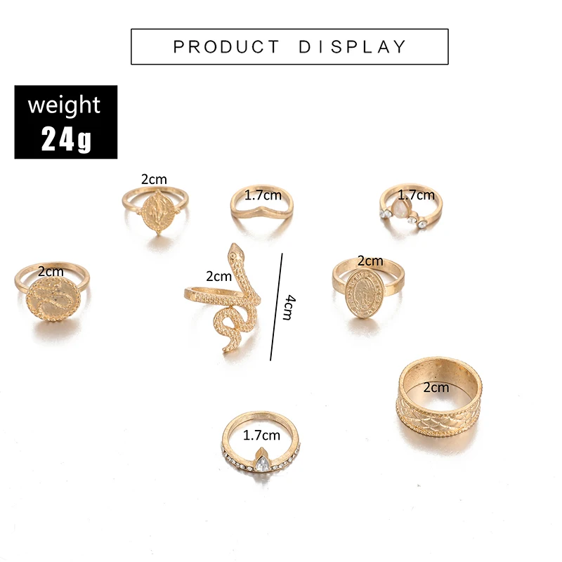 Набор Колец docona 9 шт.компл. в стиле бохо женский, комплект колец...