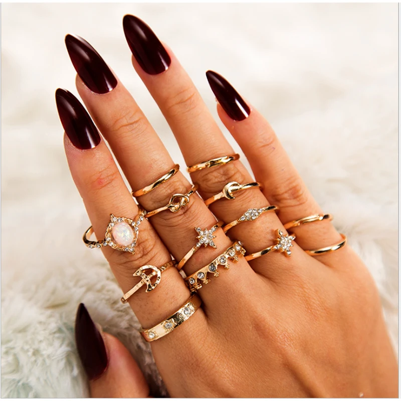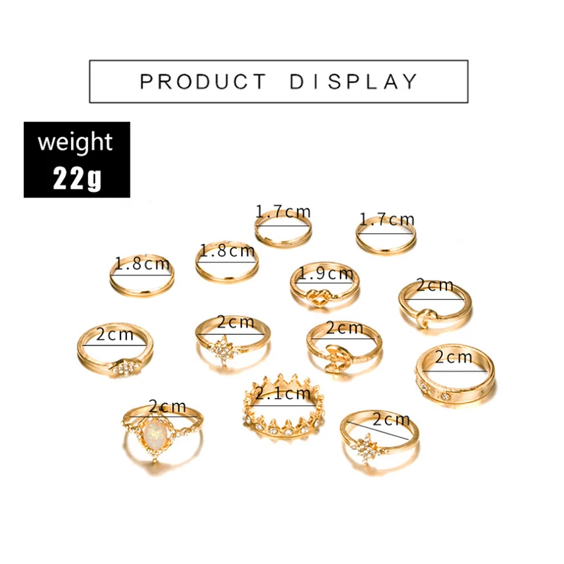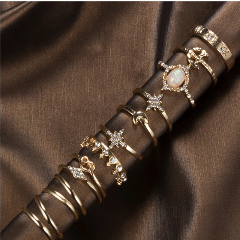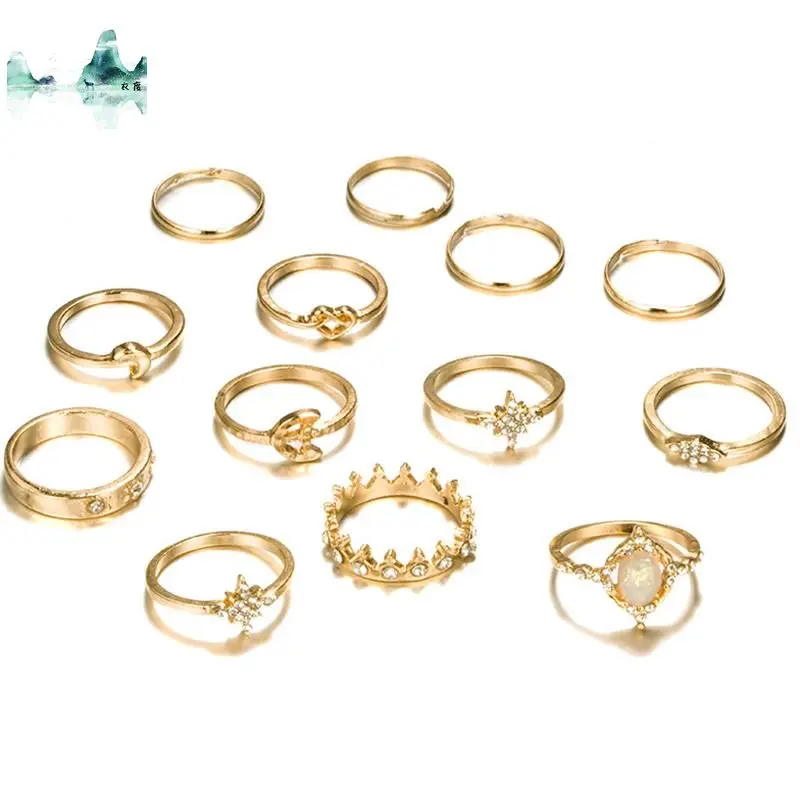 13 шт.компл. женские богемные ретро кольца в виде короны со звездой Луной и кристаллами женские очаровательные кольца ювелирные изделия вечерние ринки и свадьбы