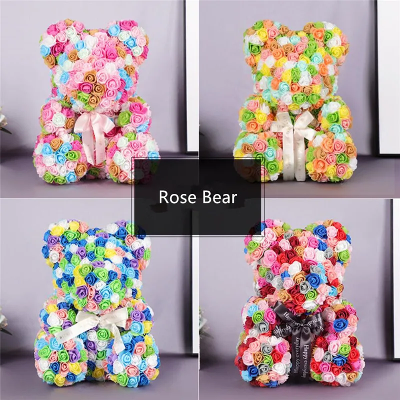 Искусственные цветы сделай сам, Многоцветный Медведь из пенопласта, подарок на день Святого Валентина, День рождения, весеннее украшение
