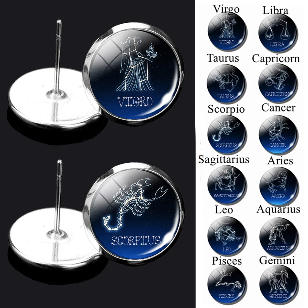 Винтажные серьги-гвоздики с 12 созвездиями зодиака, серебряные металлические серьги для женщин, свадебные подарки, серьги