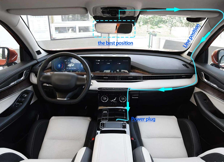 1. Выберите правильное положение: привяжите регистратор и зеркало заднего вида вместе с ремешком (тип присоски можно зафиксировать непосредственно на положении переднего лобового стекла), зафиксируйте машинку и подключите отверстие питания.2. Определите путь проводки: вставьте шнур питания вдоль потолочного и дверного герметика, а затем потяните его вниз по ленте.3. Определите маршрут пряжки проводки: Используйте пряжку проводки под ручной пряжкой, чтобы спрятать излишки проводов под ней, и оставьте соответствующий провод для подключения к прикуривателю.4. Вилка питания: вставьте прикуриватель и установите регистратор.
