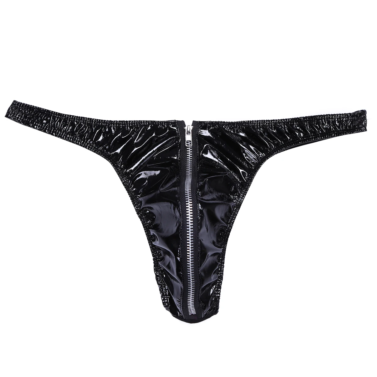 Пикантные Для Мужчин Латекс молния трусы секс Для мужчин s кожаное бикини трусы нижнее белье Эротическое белье g-стринги и стринги трусики