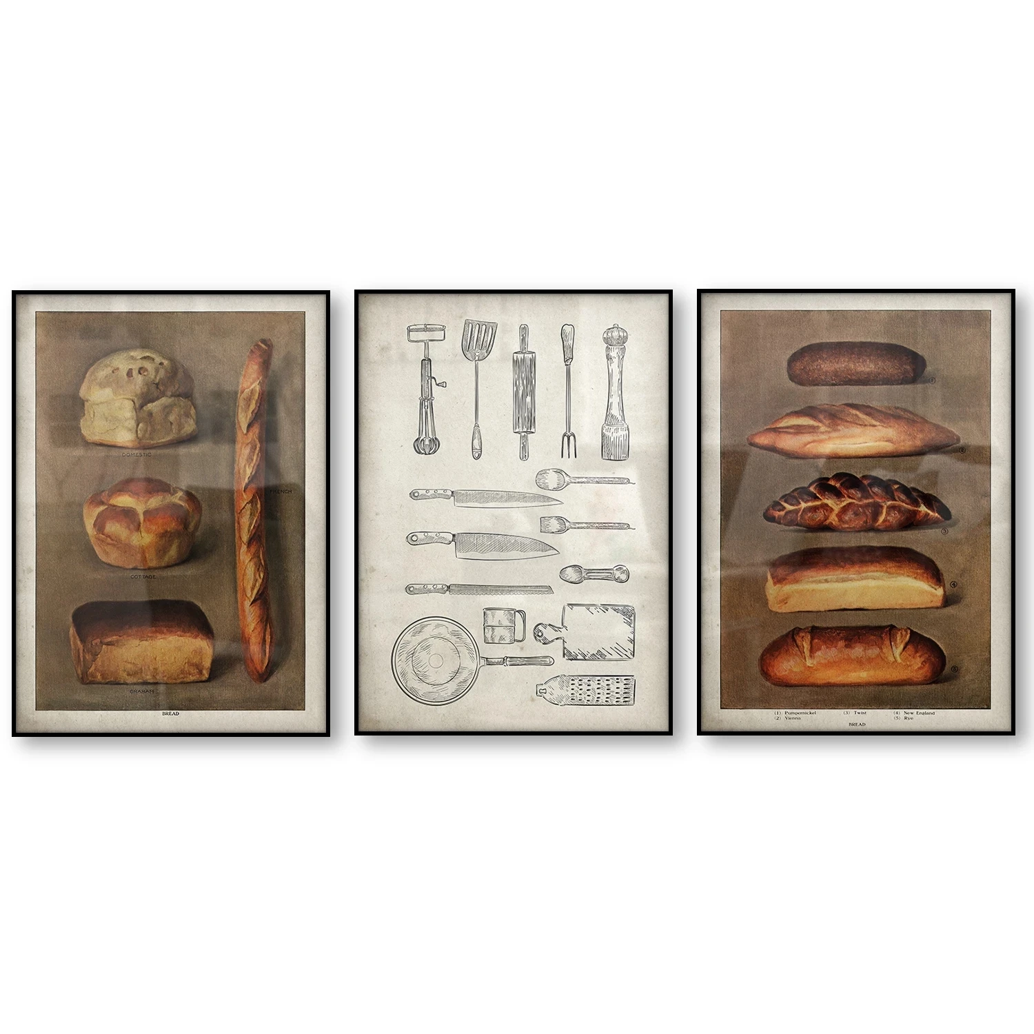 Винтажный постер для хлеба, еды, кухни, пекарни, хлеба, хлеба, иллюстрация, настенное искусство, французский античный холст, печатная картина